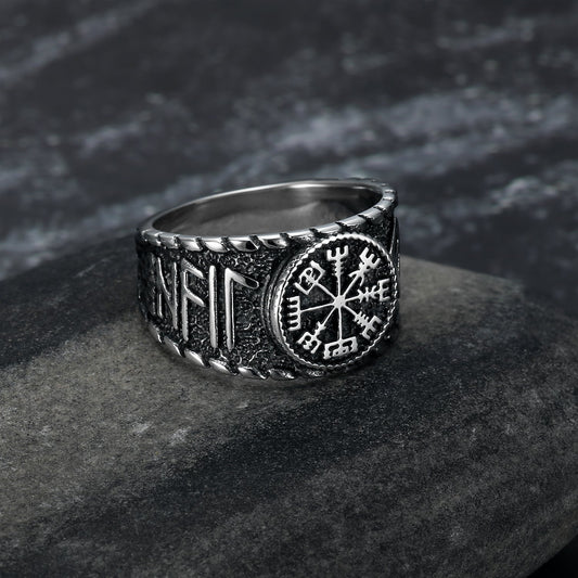 Bjorn Regalia Handcrafted Stainless Steel Vegvisir and Runes Ring
