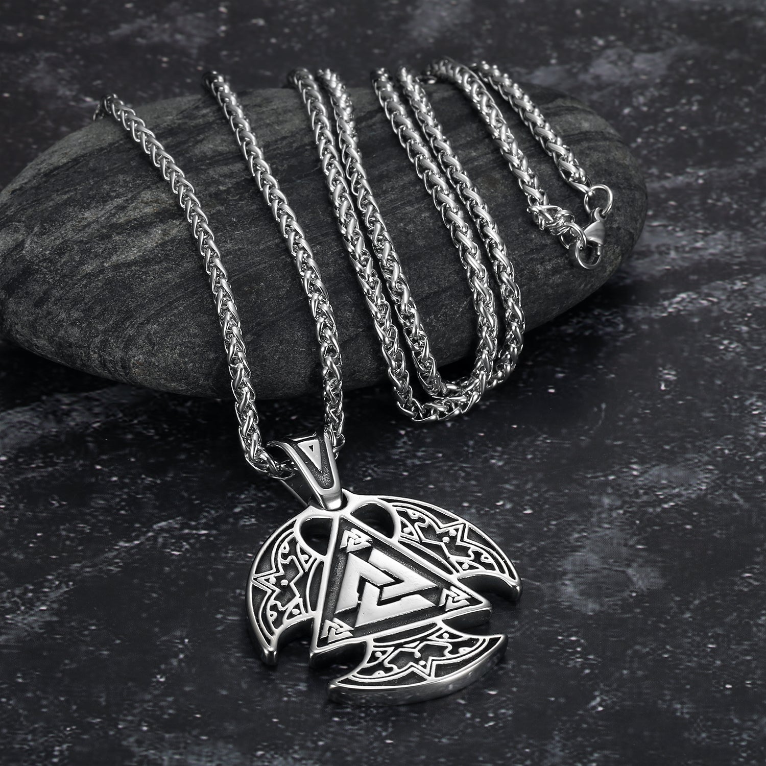 Bjorn Regalia Circular Handcrafted Stainless Steel Valknut Axe Head Pendant