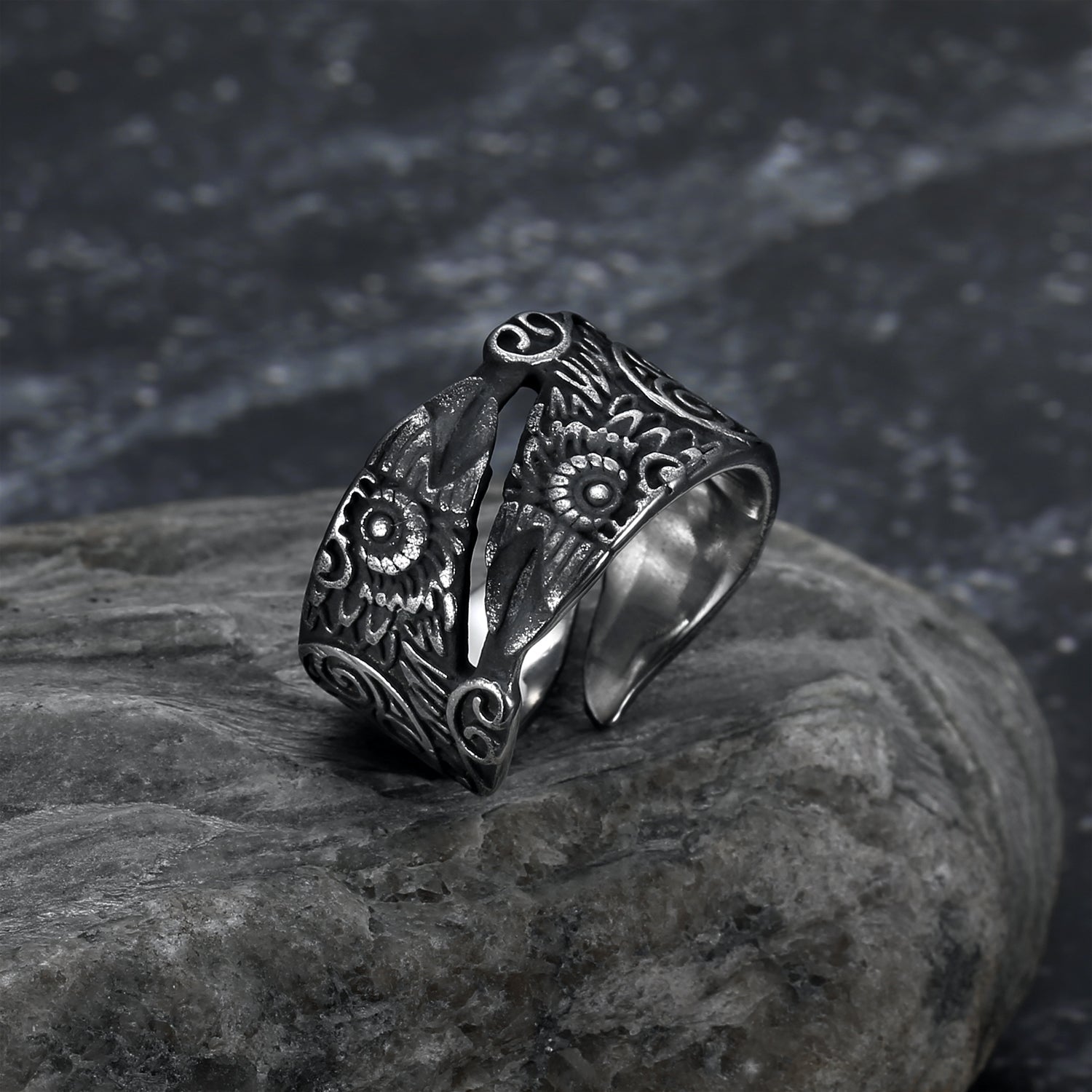 Bjorn Regalia Handcrafted Stainless Steel Adjustable Raven Ring