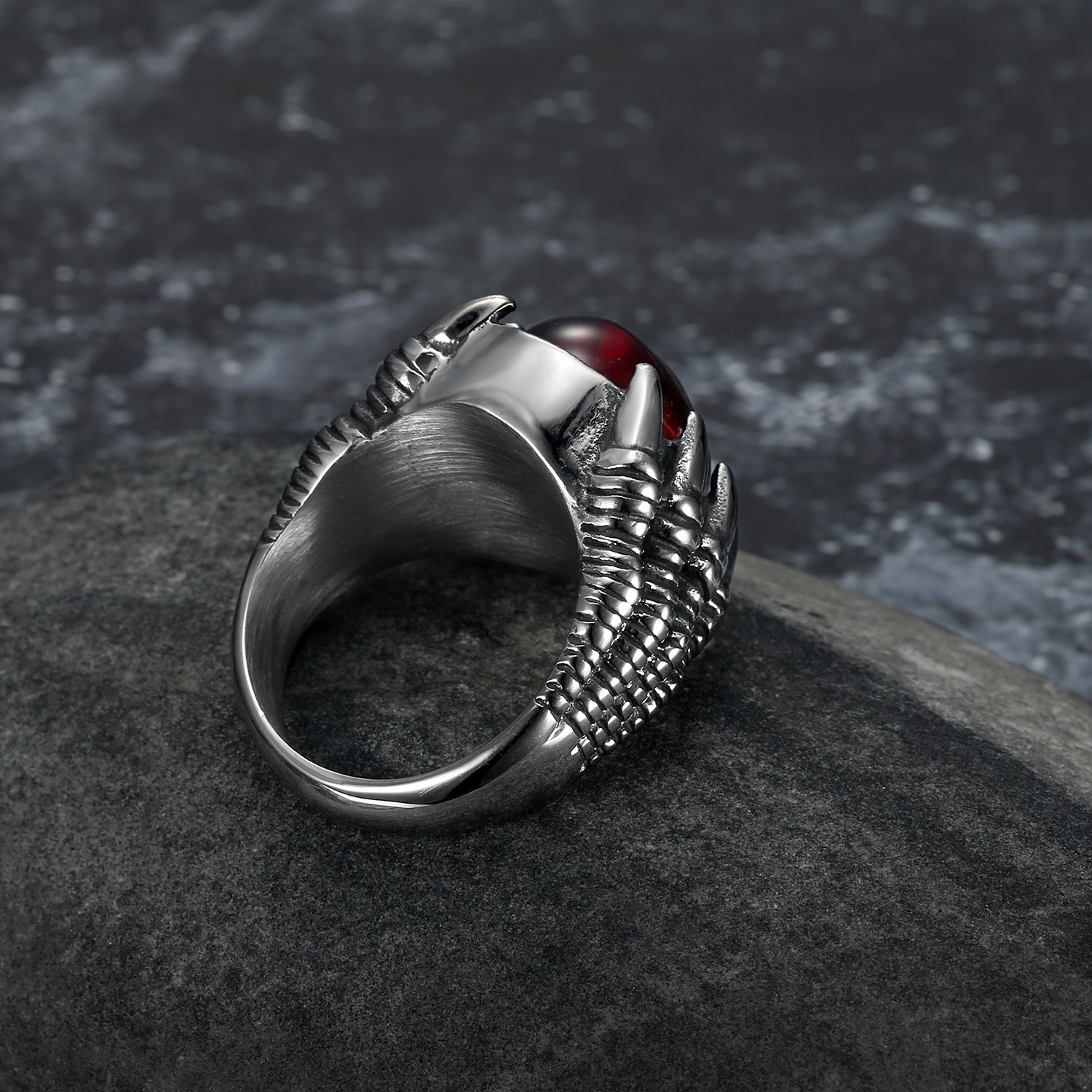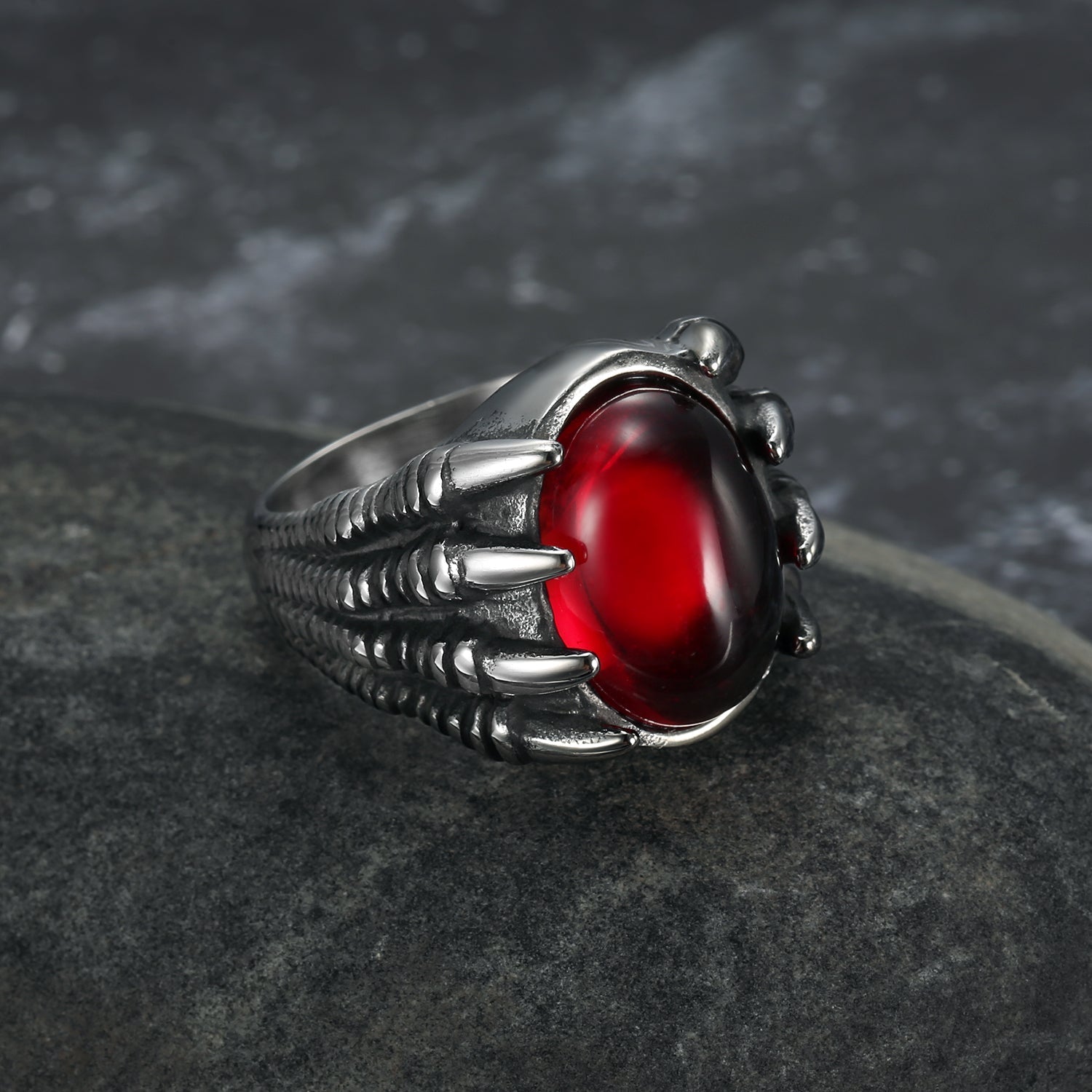 Bjorn Regalia Handcrafted Stainless Steel Dragon Claw Biker Ring With Inset Stone