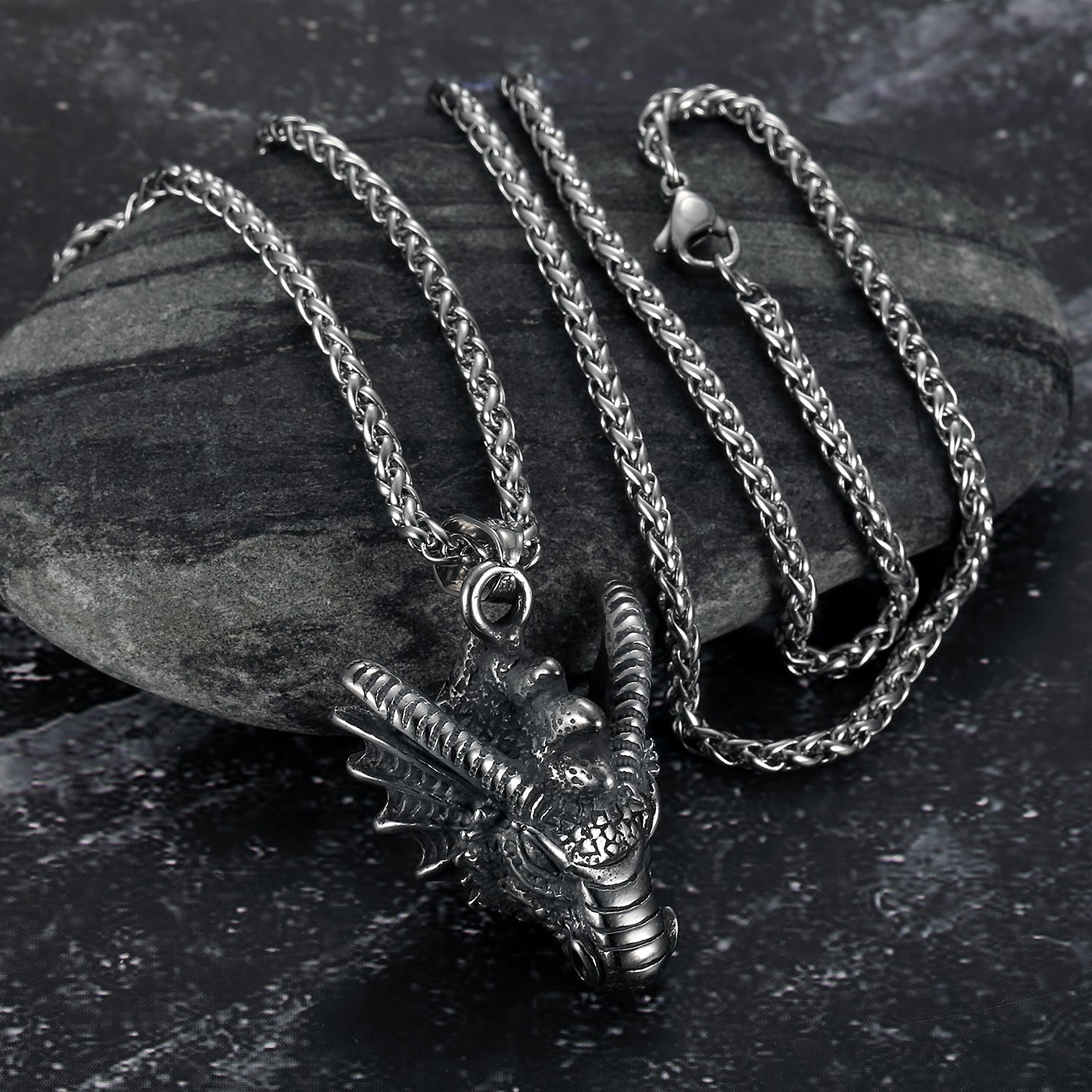 Bjorn Regalia Handcrafted Stainless Steel Dragon Head Necklace