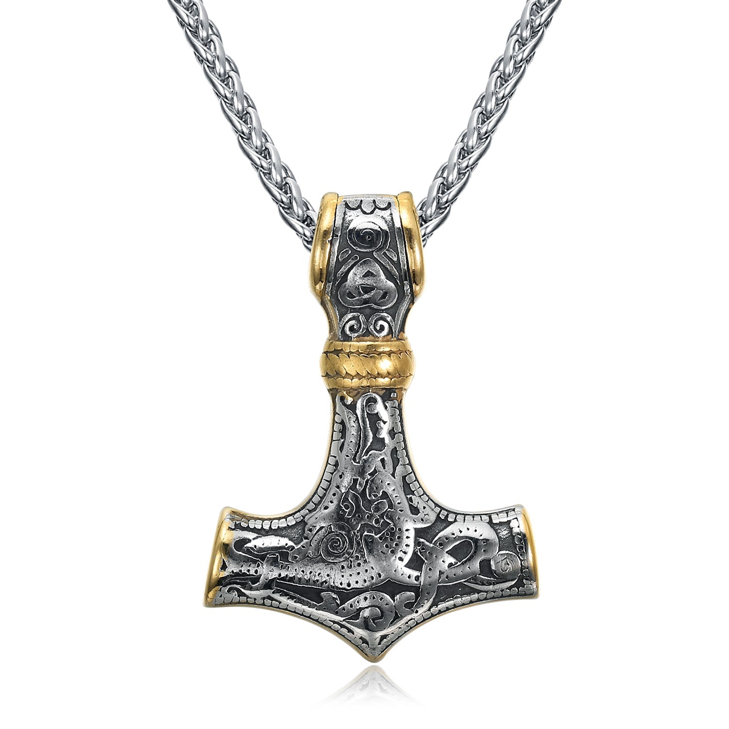 Bjorn Regalia Handcrafted Stainless Steel Dual Color Mammen-Style Thor's Hammer Pendant