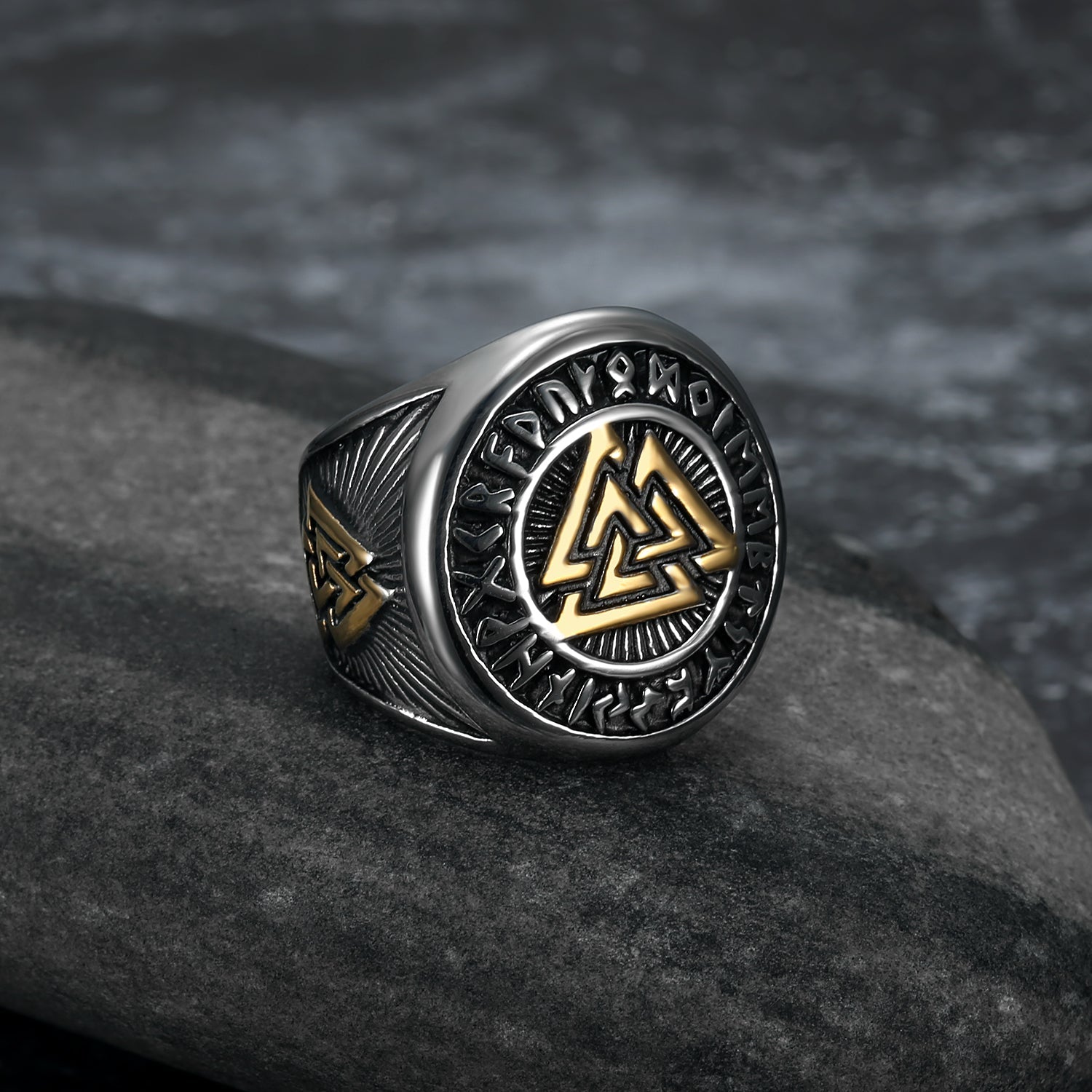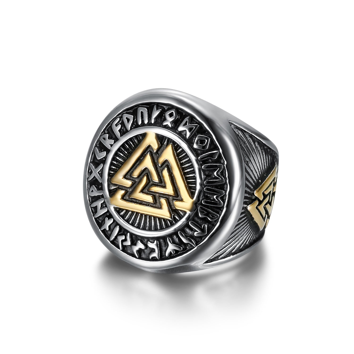 Bjorn Regalia Handcrafted Stainless Steel Dual Color Valknut and Runes Ring