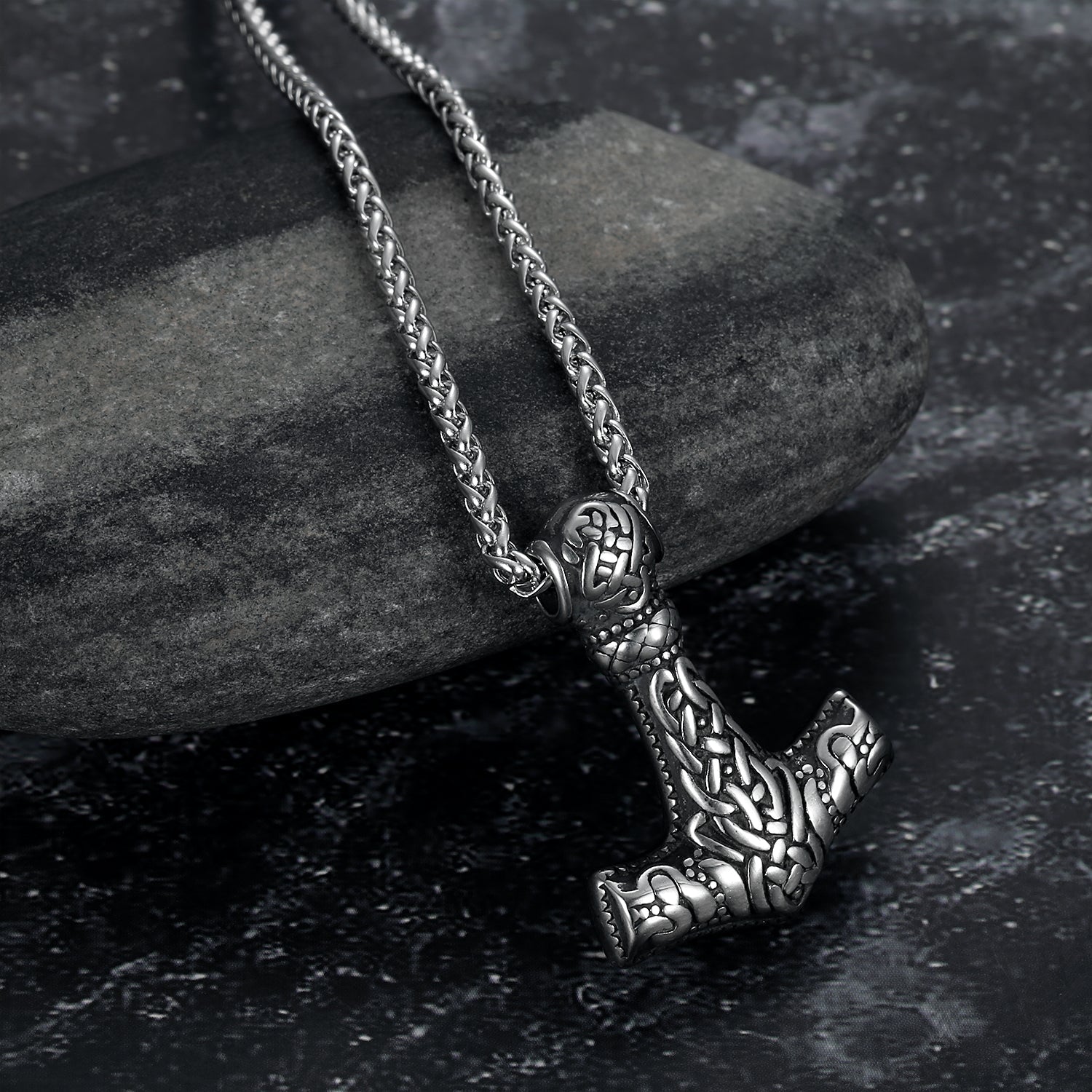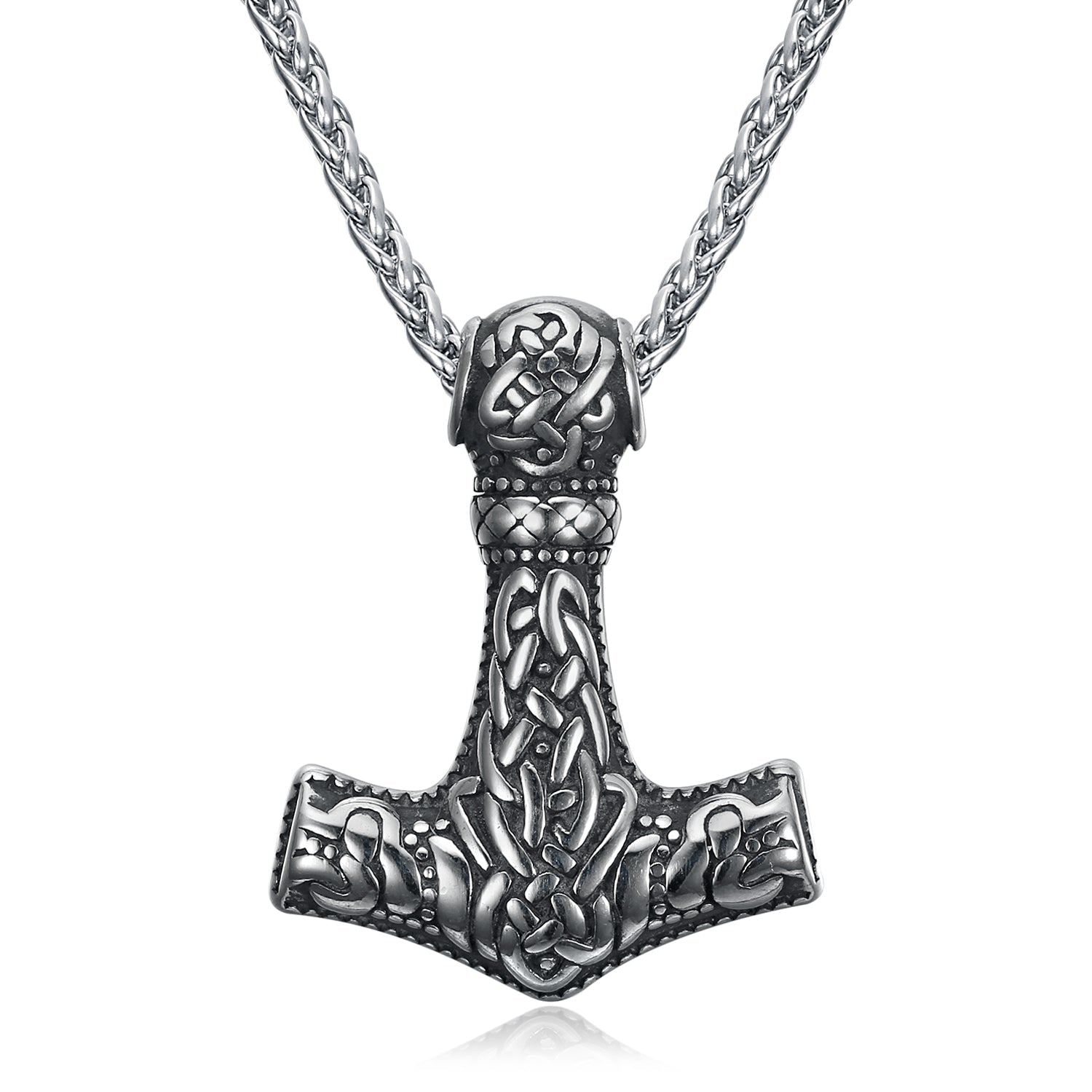 Bjorn Regalia Handcrafted Stainless Steel Fenrir Mjolnir Pendant