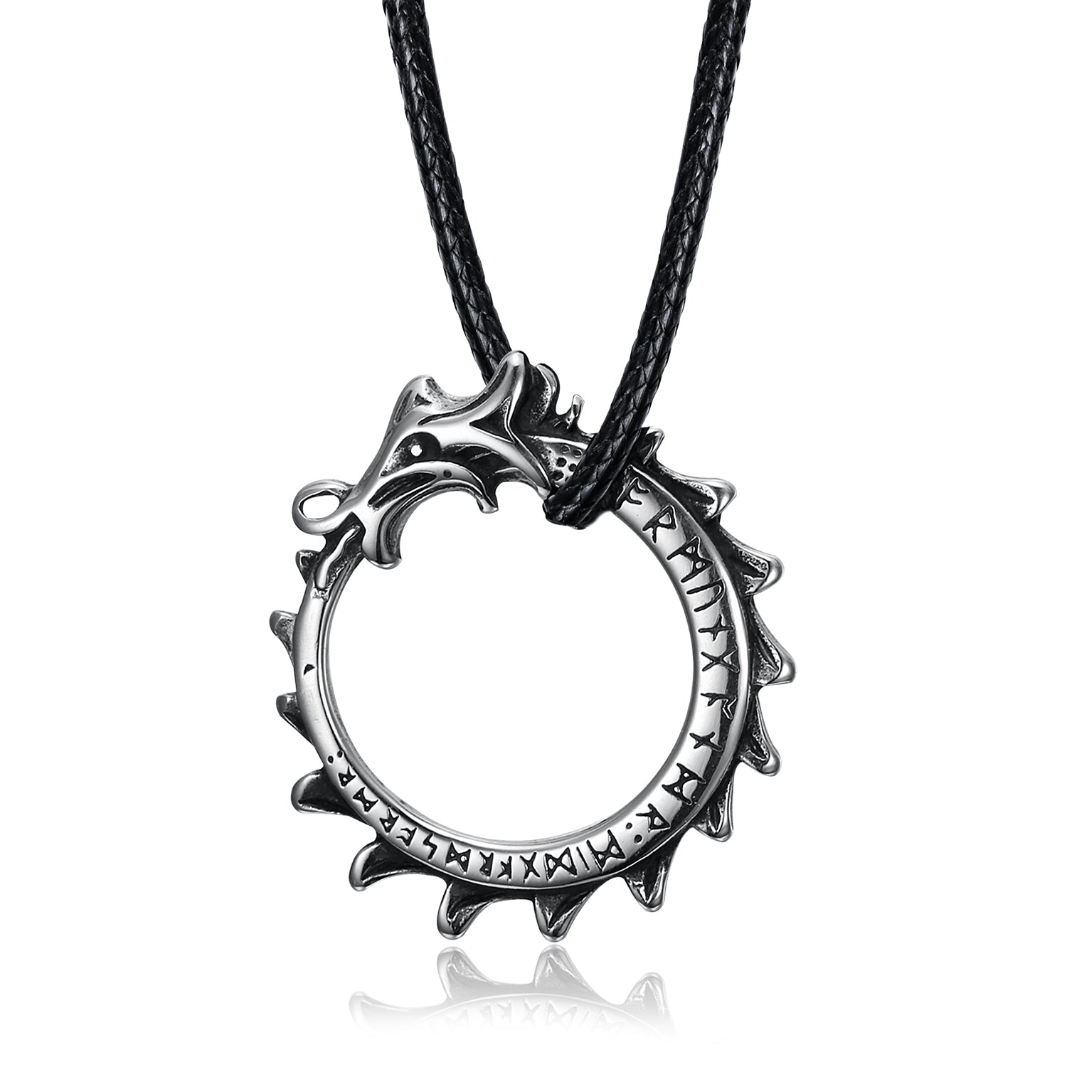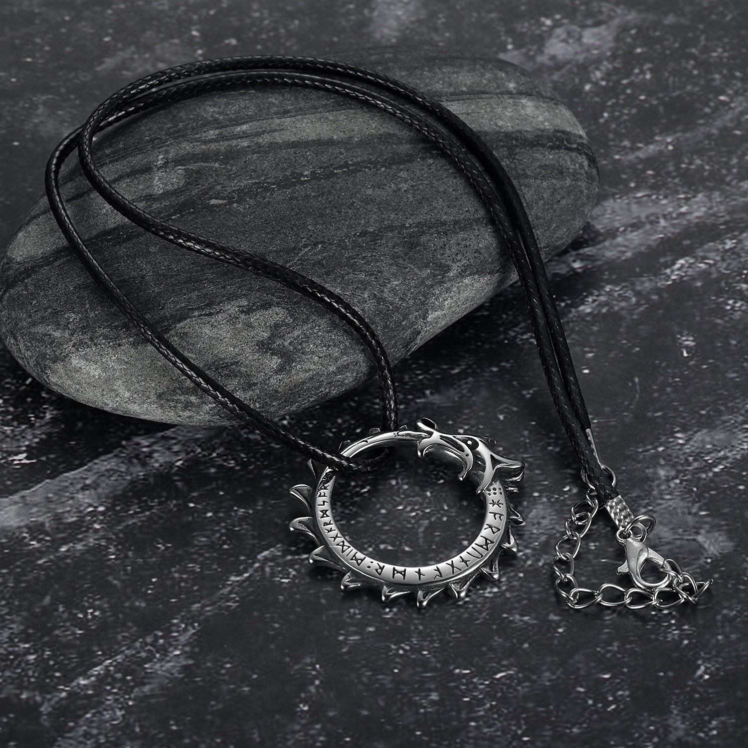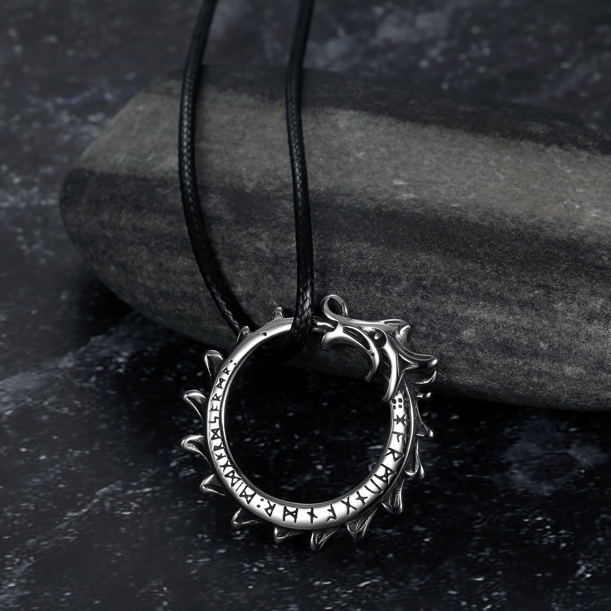 Bjorn Regalia Handcrafted Stainless Steel Jormungand Serpent and Rune Necklace