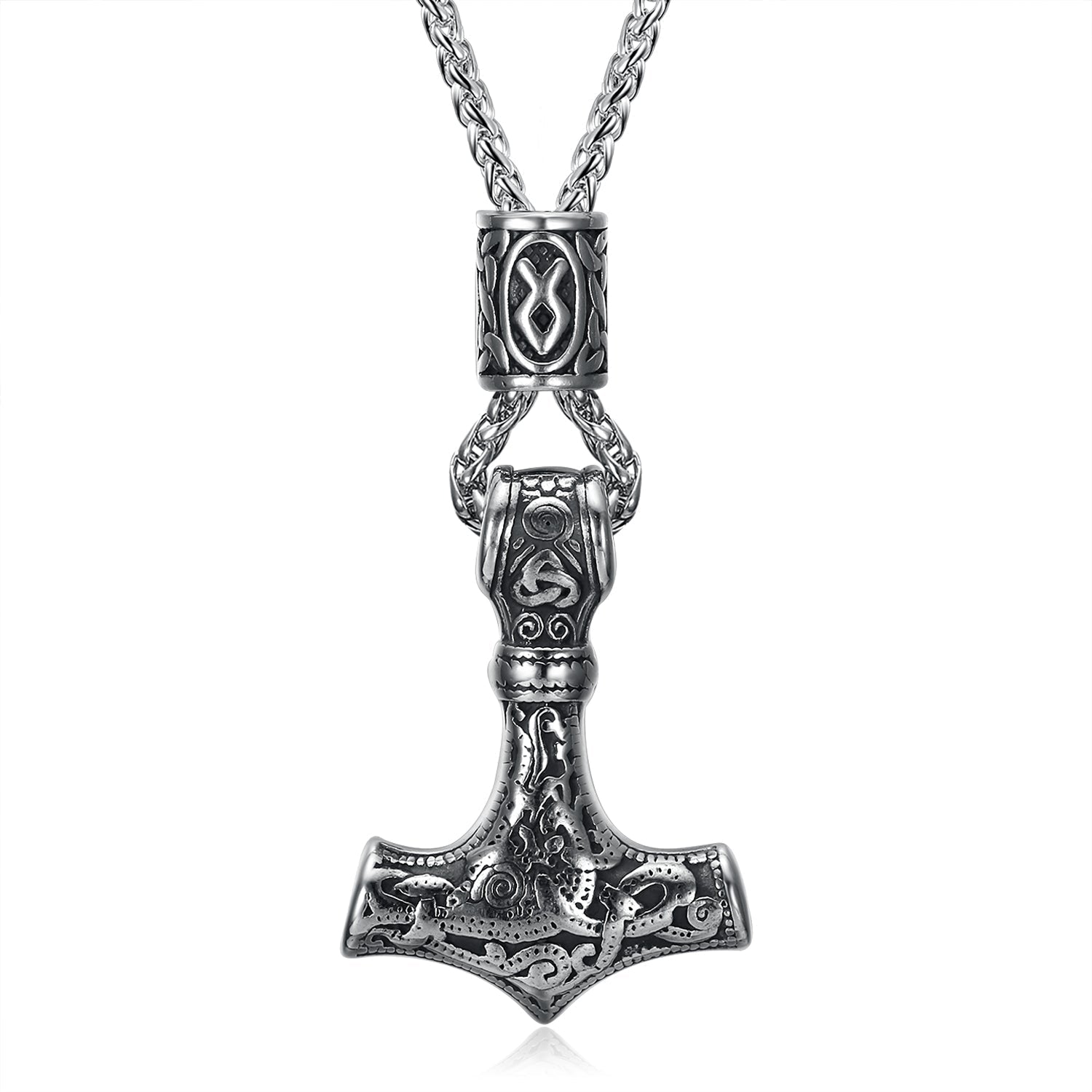 Bjorn Regalia Handcrafted Stainless Steel Mjolnir and Othala Pendant