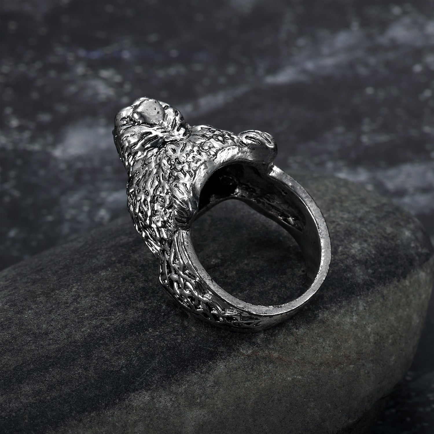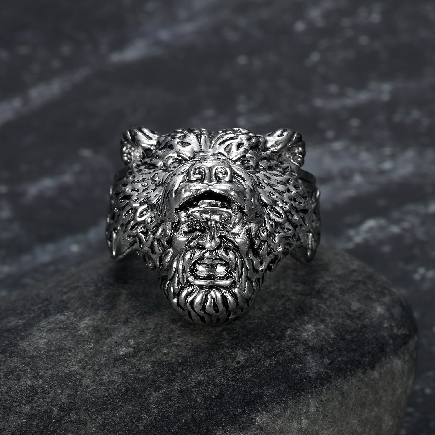 Bjorn Regalia Handcrafted Stainless Steel Odin and Wolf Ring