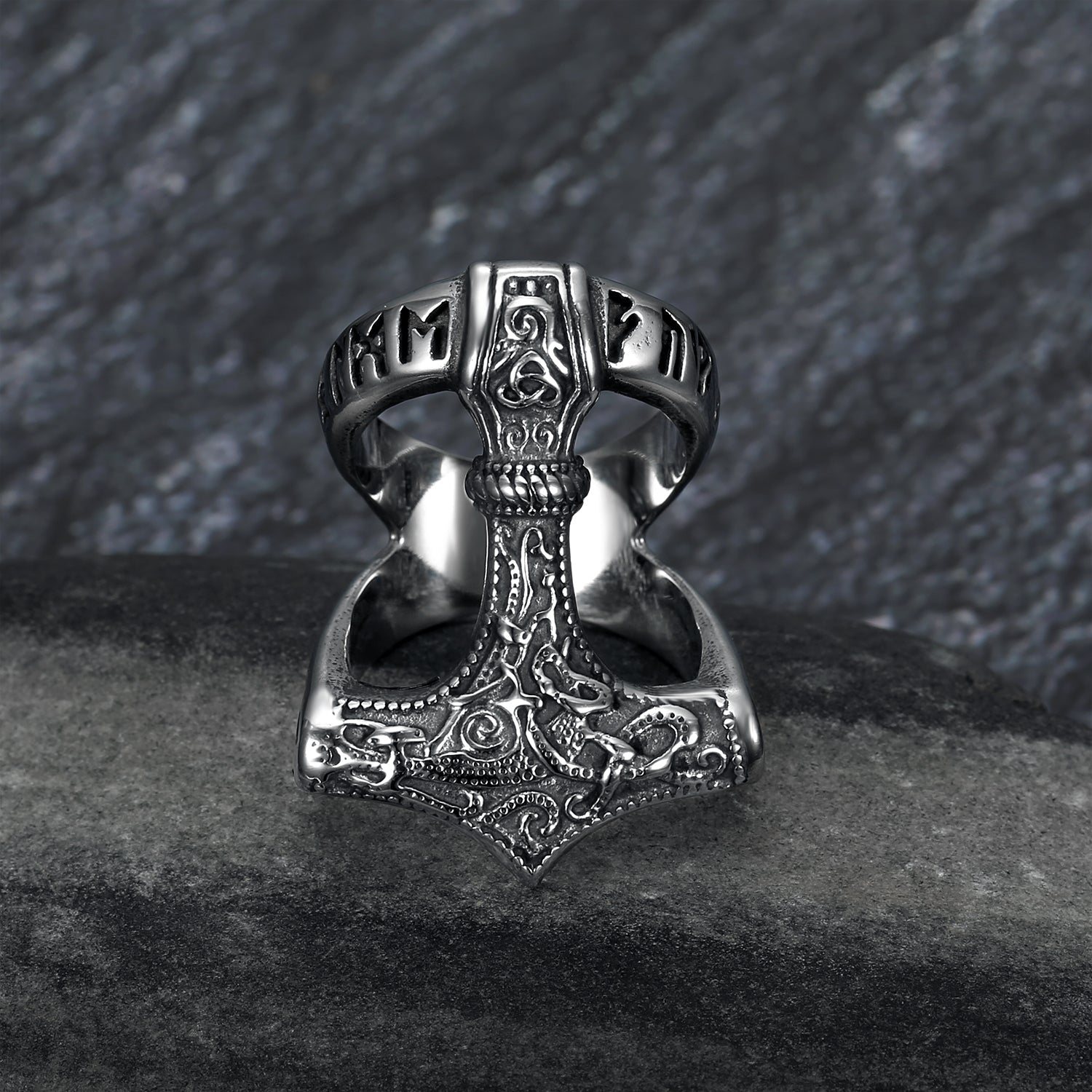 Bjorn Regalia Handcrafted Stainless Steel Open Thor's Hammer Ring