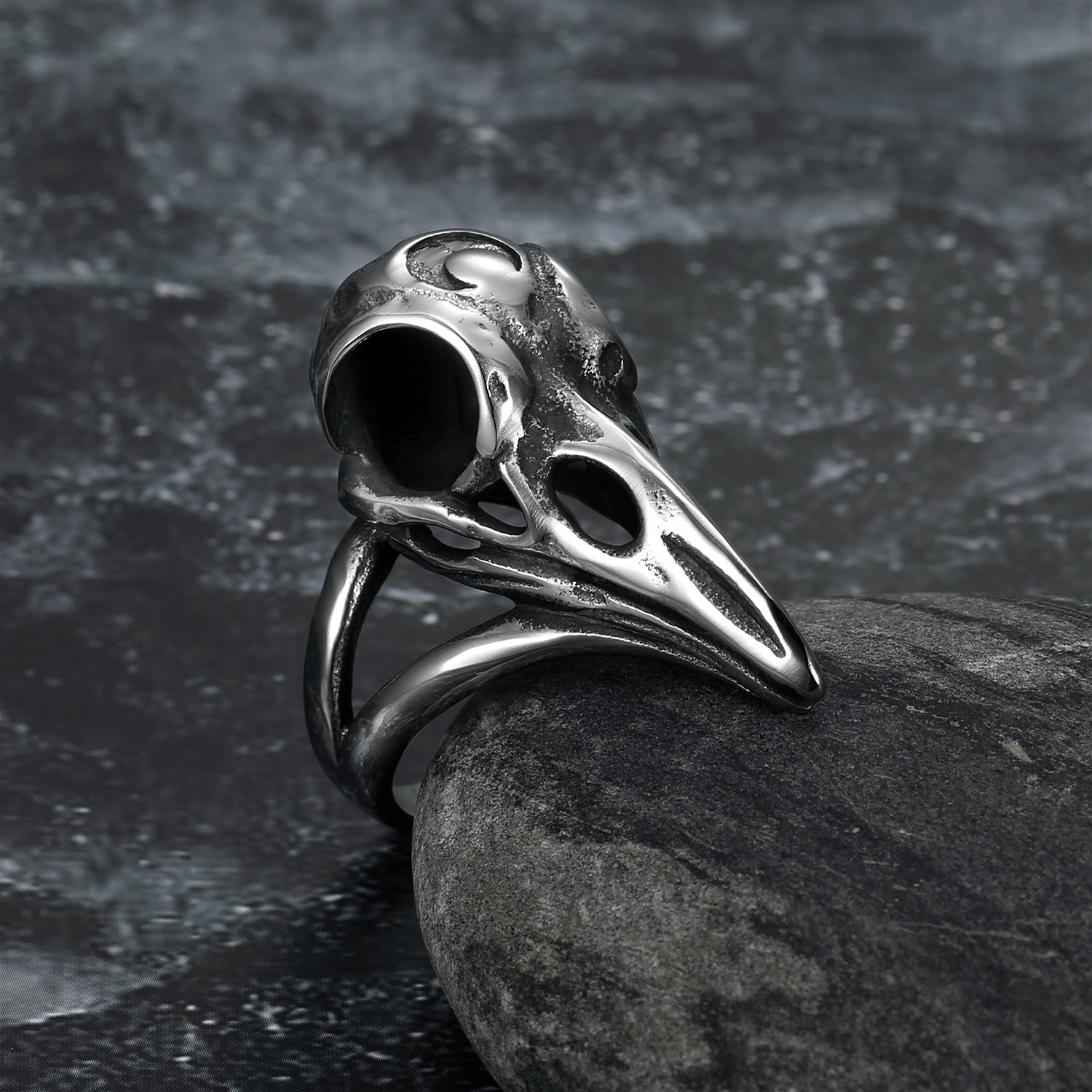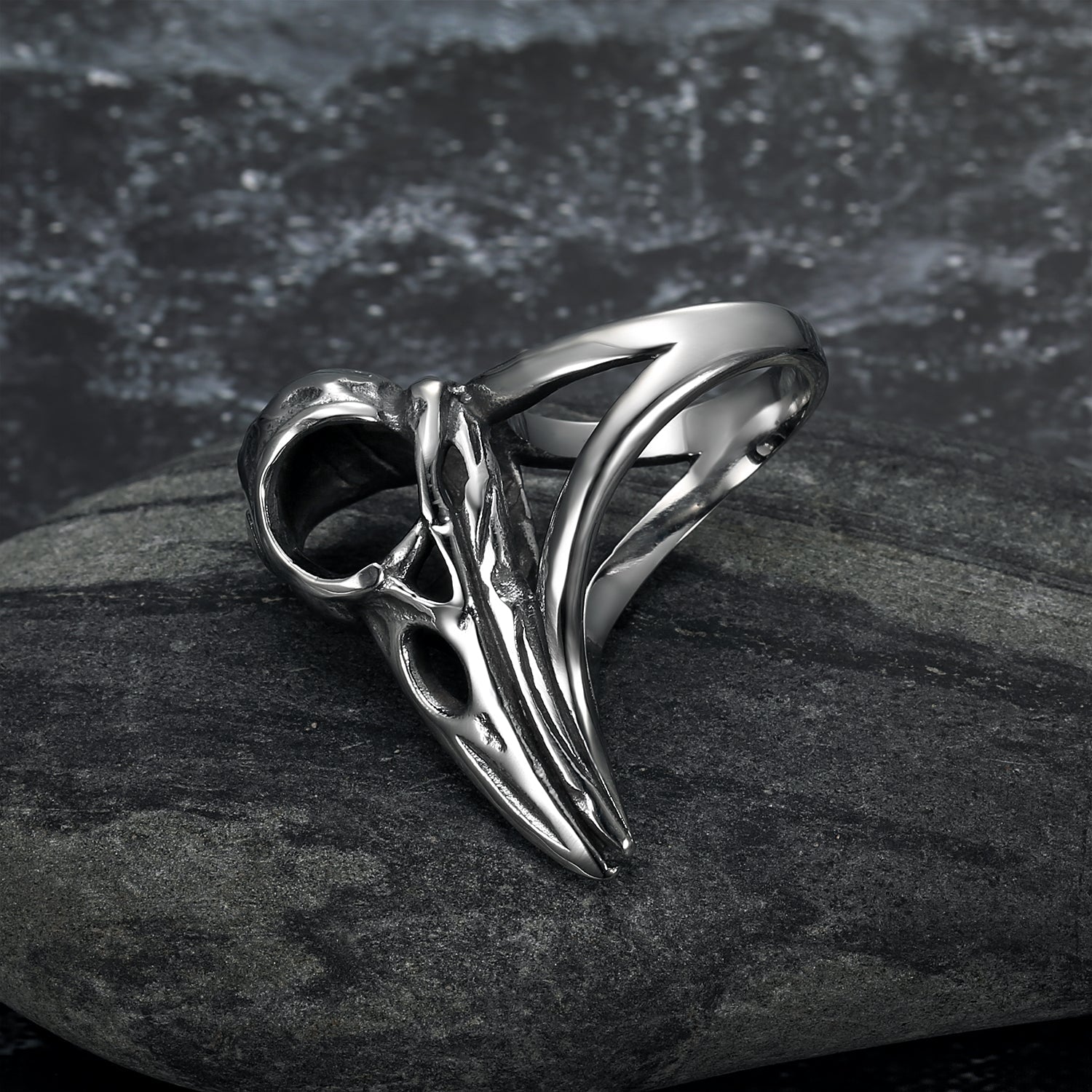 Bjorn Regalia Handcrafted Stainless Steel Raven Skull Biker Ring