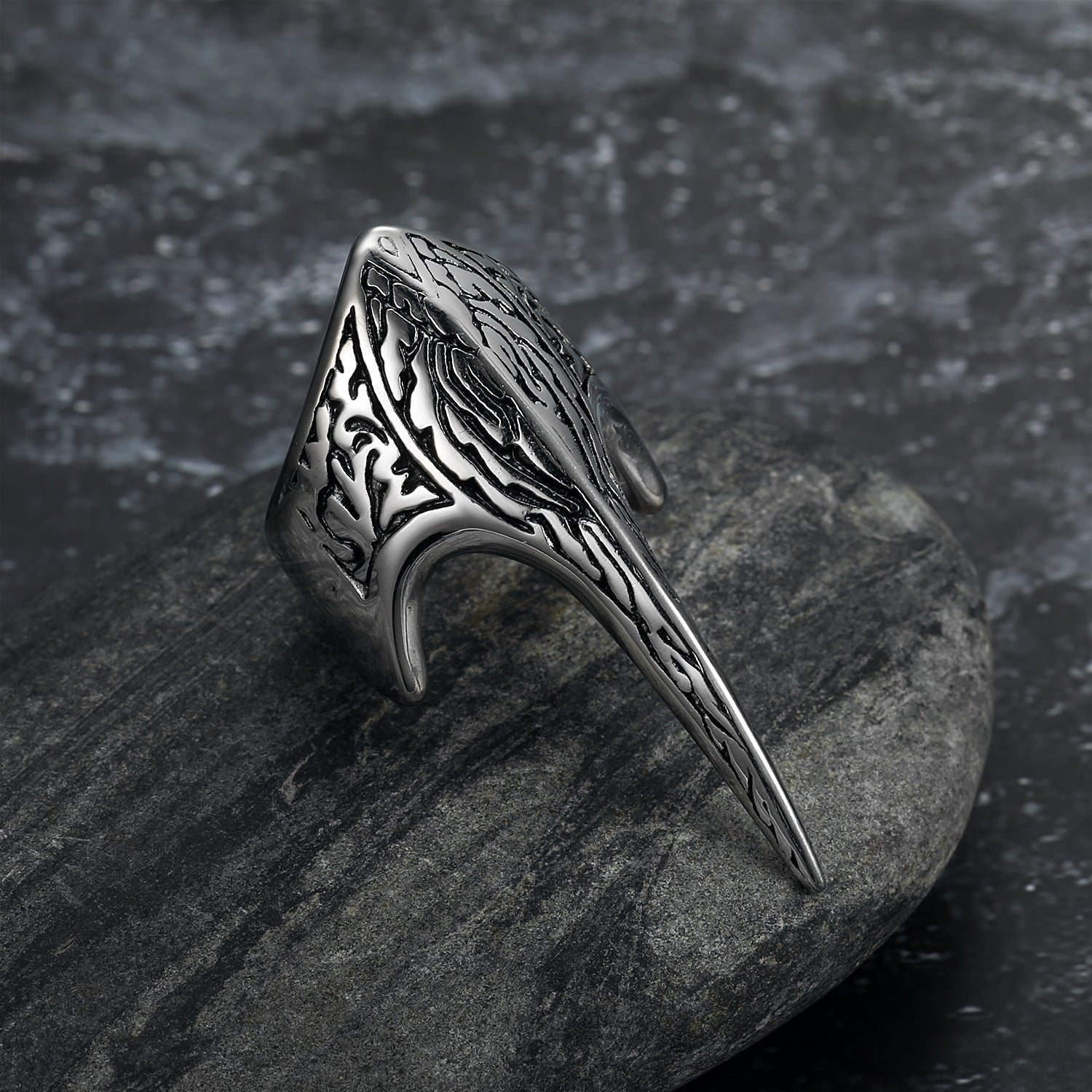 Bjorn Regalia Handcrafted Stainless Steel Stylized Raven Skull Ring