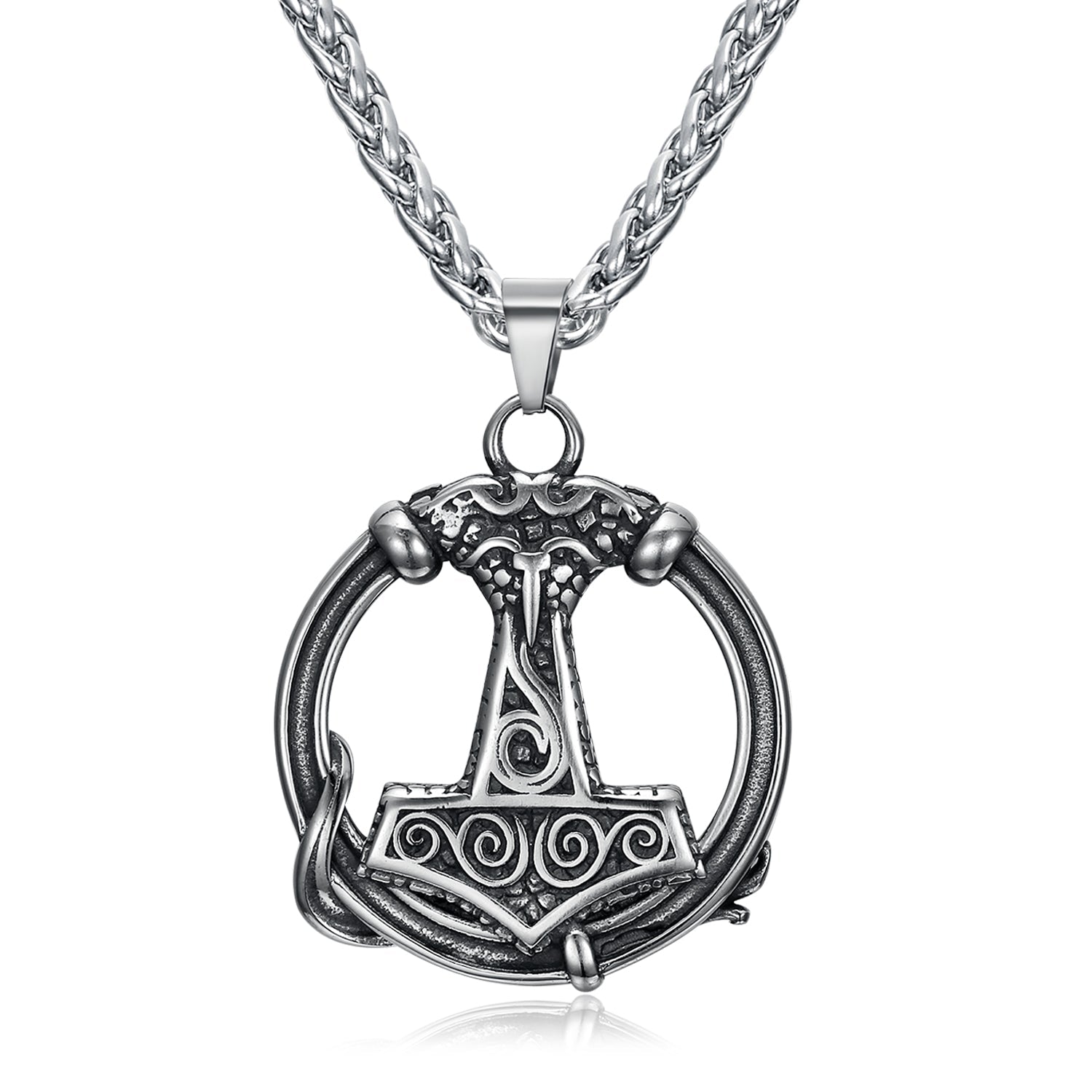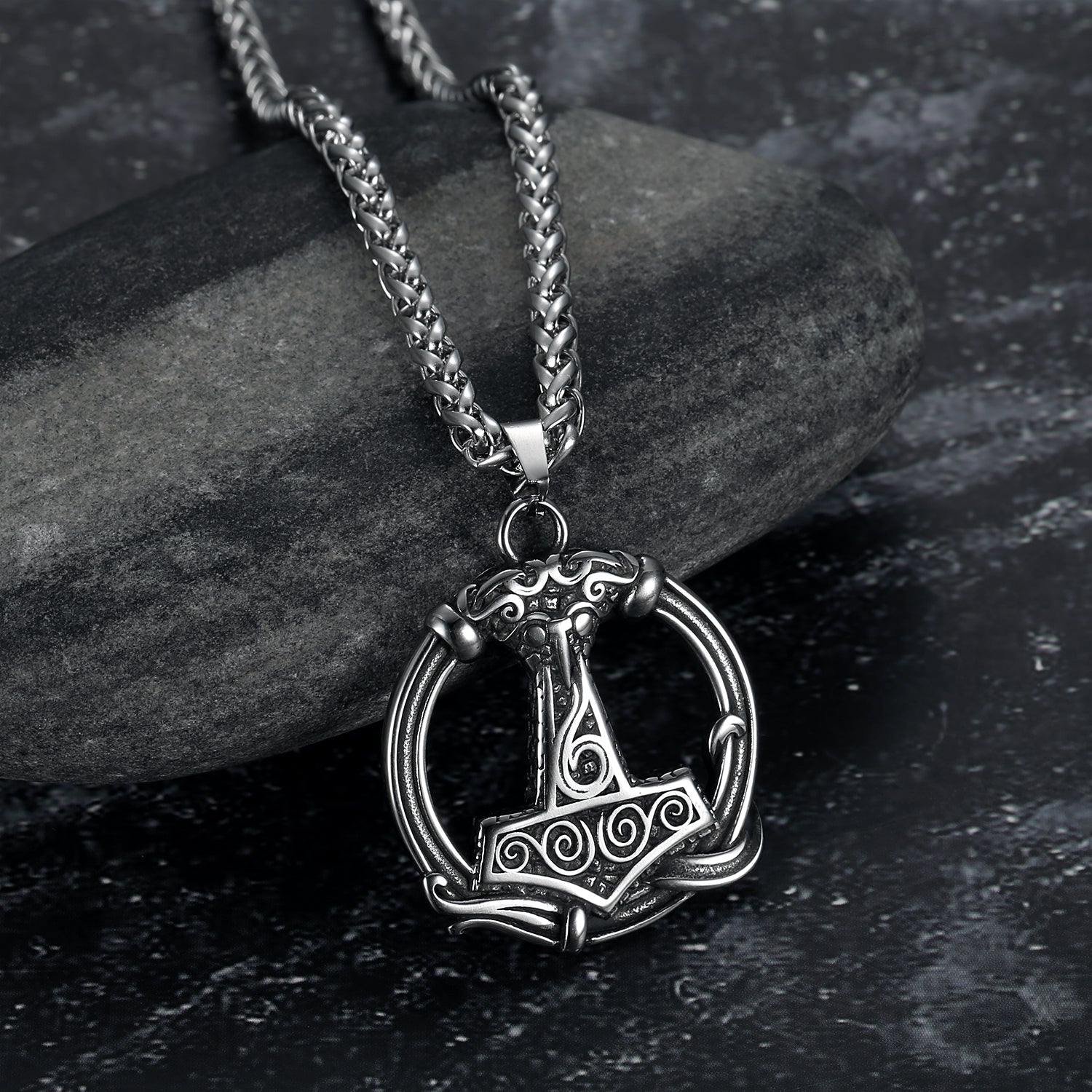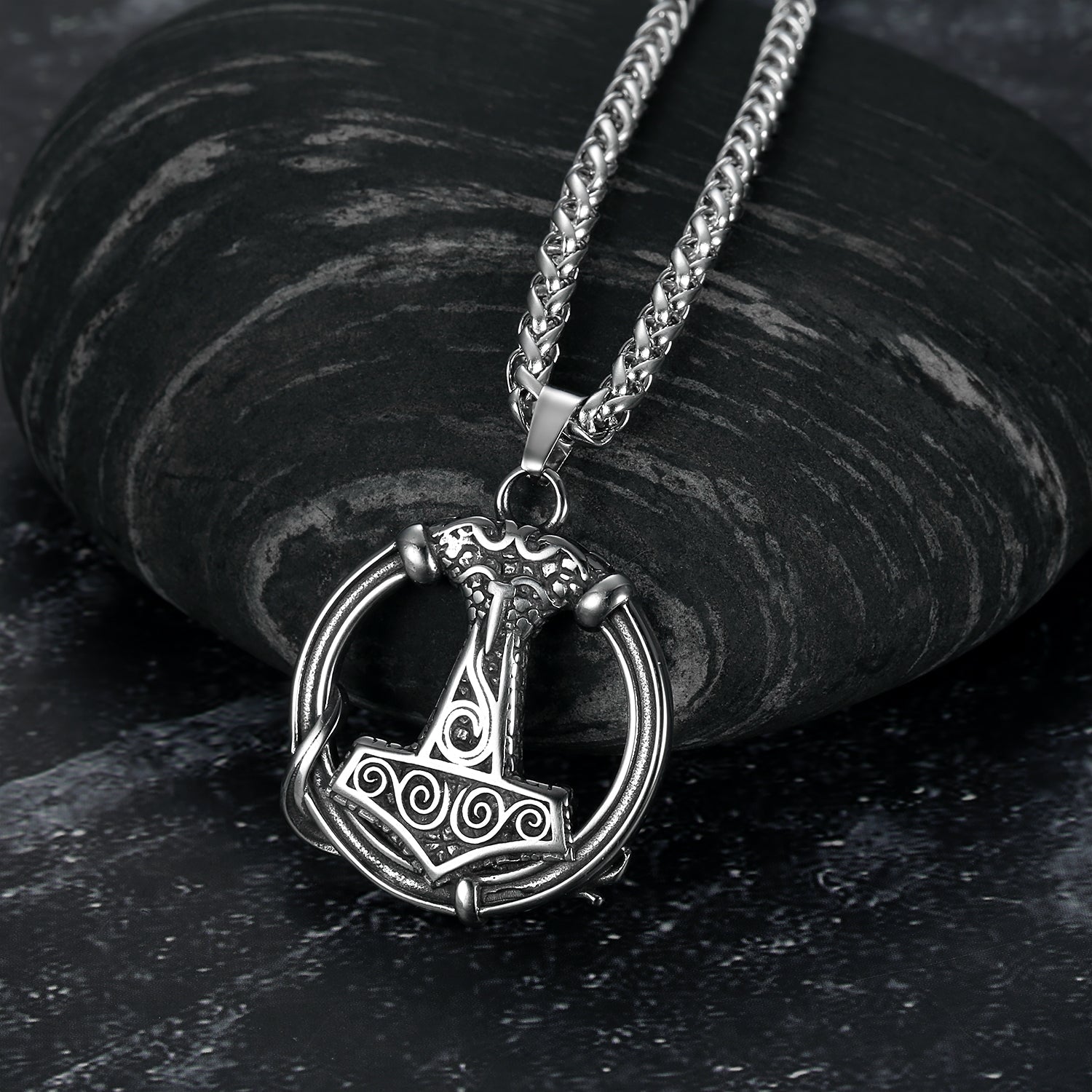 Bjorn Regalia Handcrafted Stainless Steel Thor's Hammer Circular Necklace