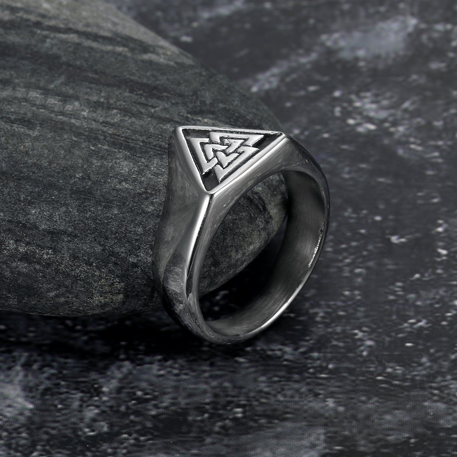 Bjorn Regalia Handcrafted Stainless Steel Triangular Valknut Ring