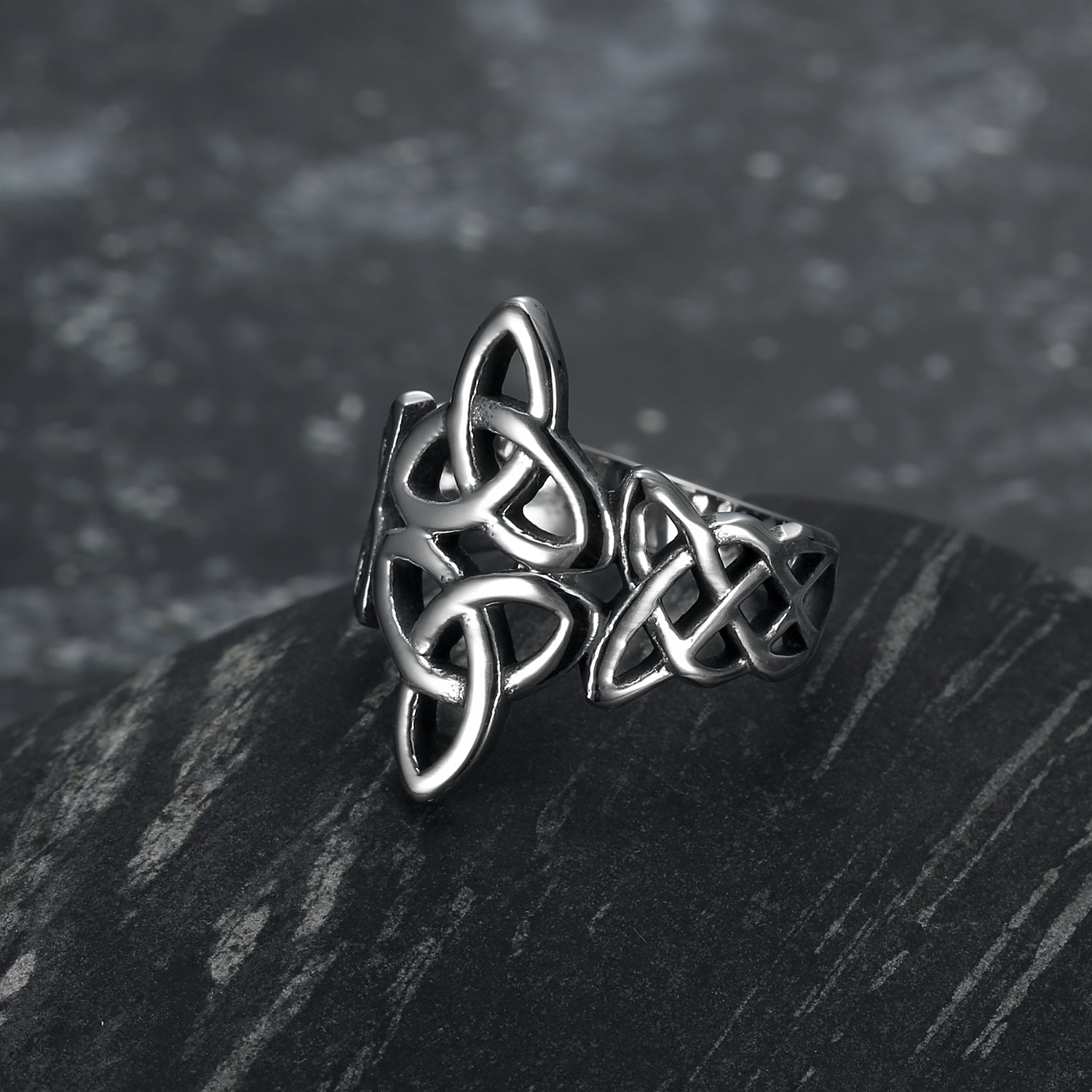 Bjorn Regalia Handcrafted Stainless Steel Triquetra and Celtic Knot Ring