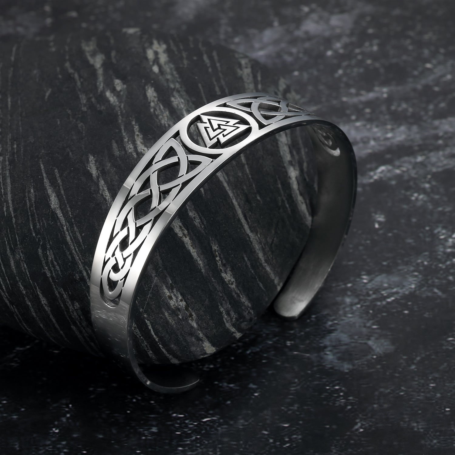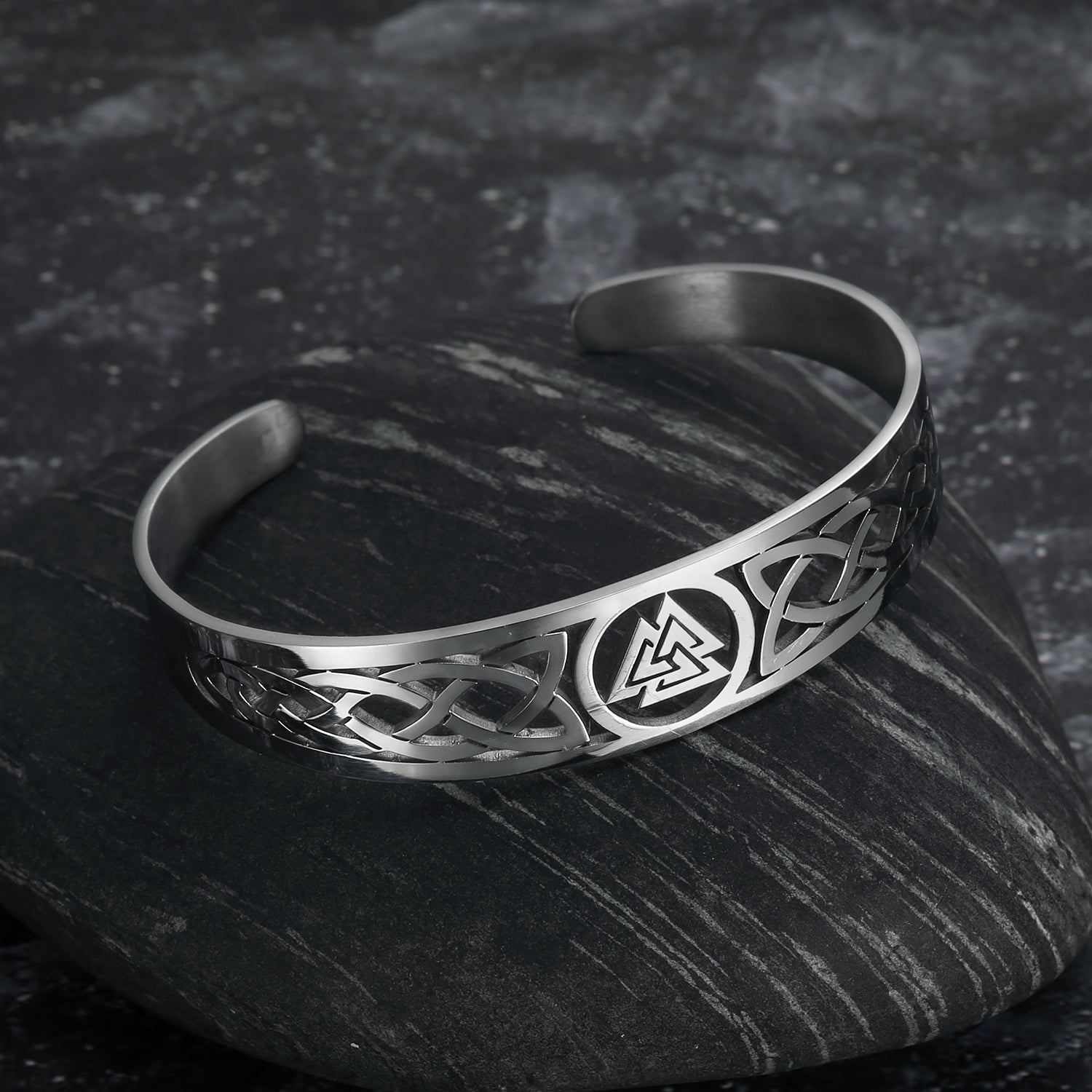 Bjorn Regalia Handcrafted Stainless Steel Valknut and Celtic Design Bracelet