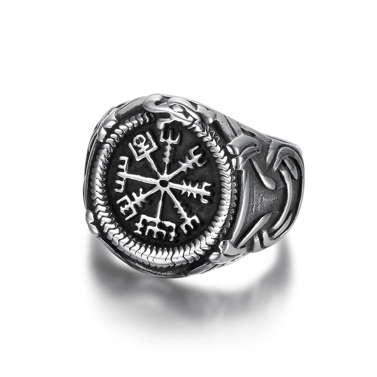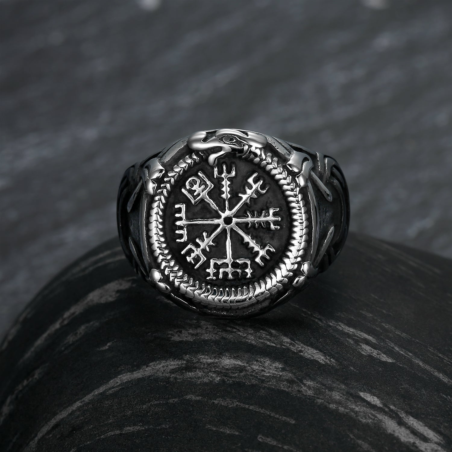 Bjorn Regalia Handcrafted Stainless Steel Vegvisir and Jormungand Ring