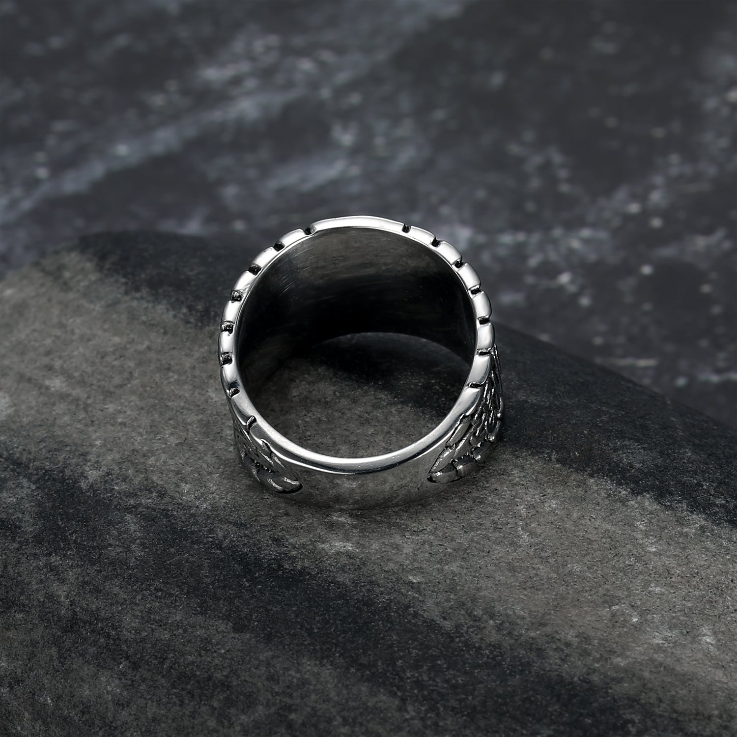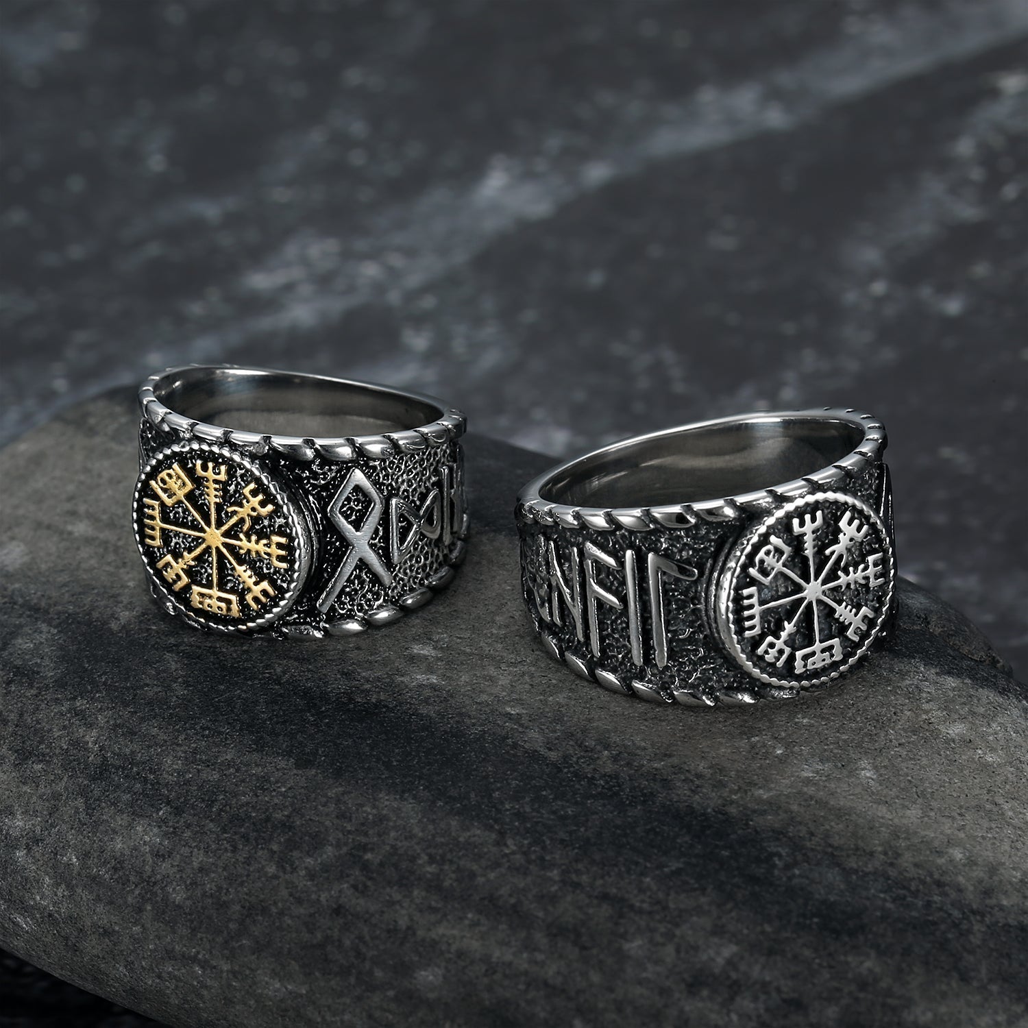 Bjorn Regalia Handcrafted Stainless Steel Vegvisir and Runes Ring