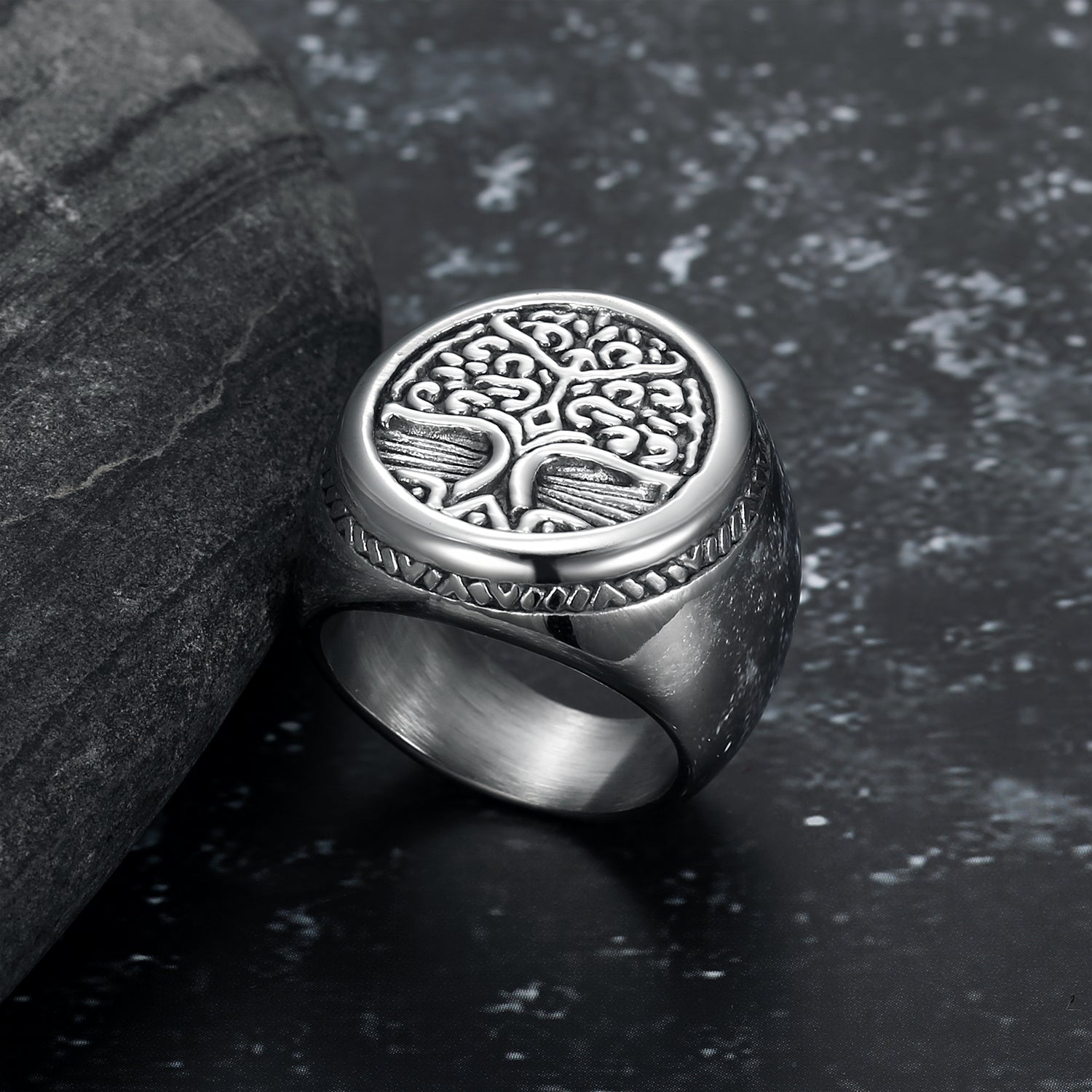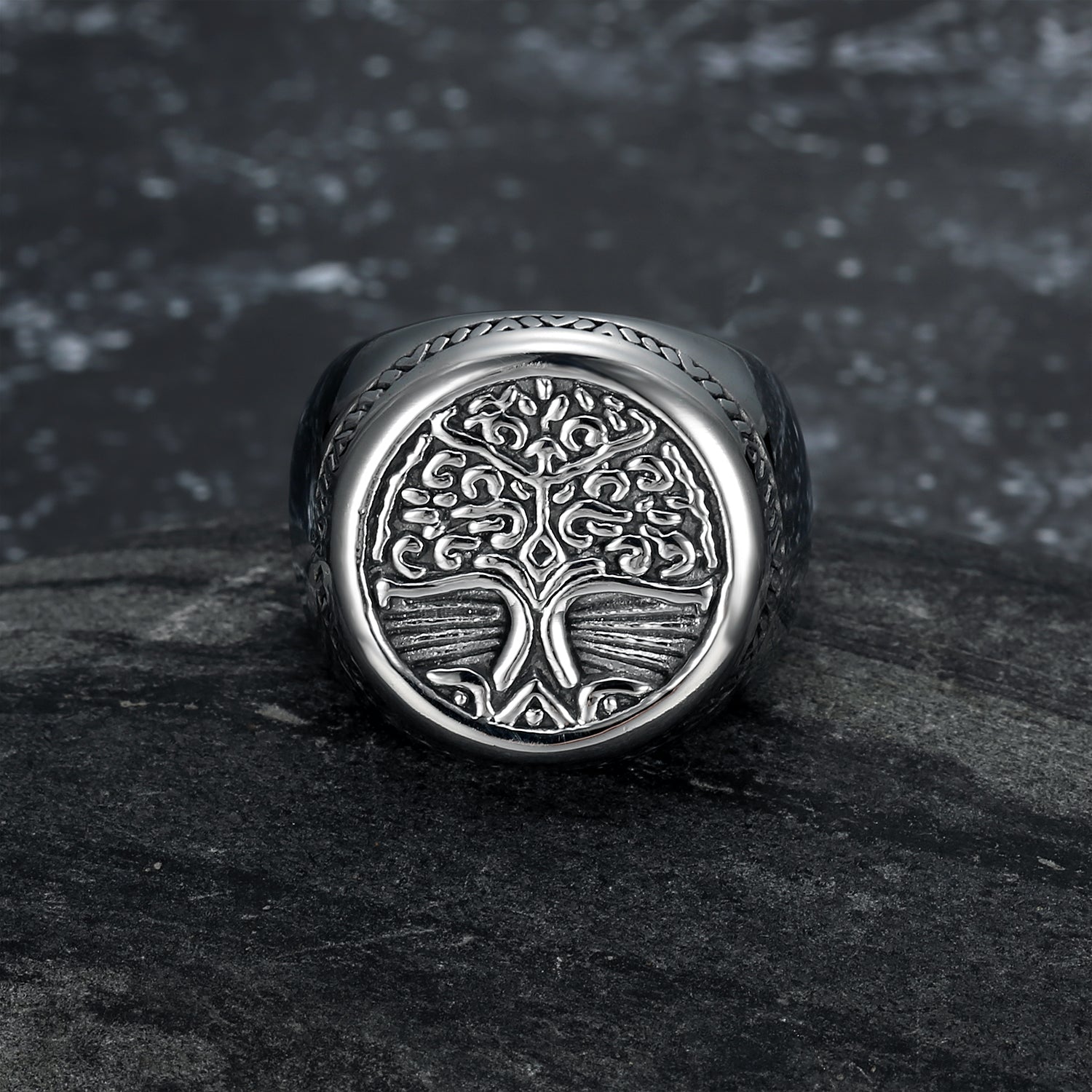 Bjorn Regalia Handcrafted Stainless Steel Yggdrasil / Tree of Life Circular Ring