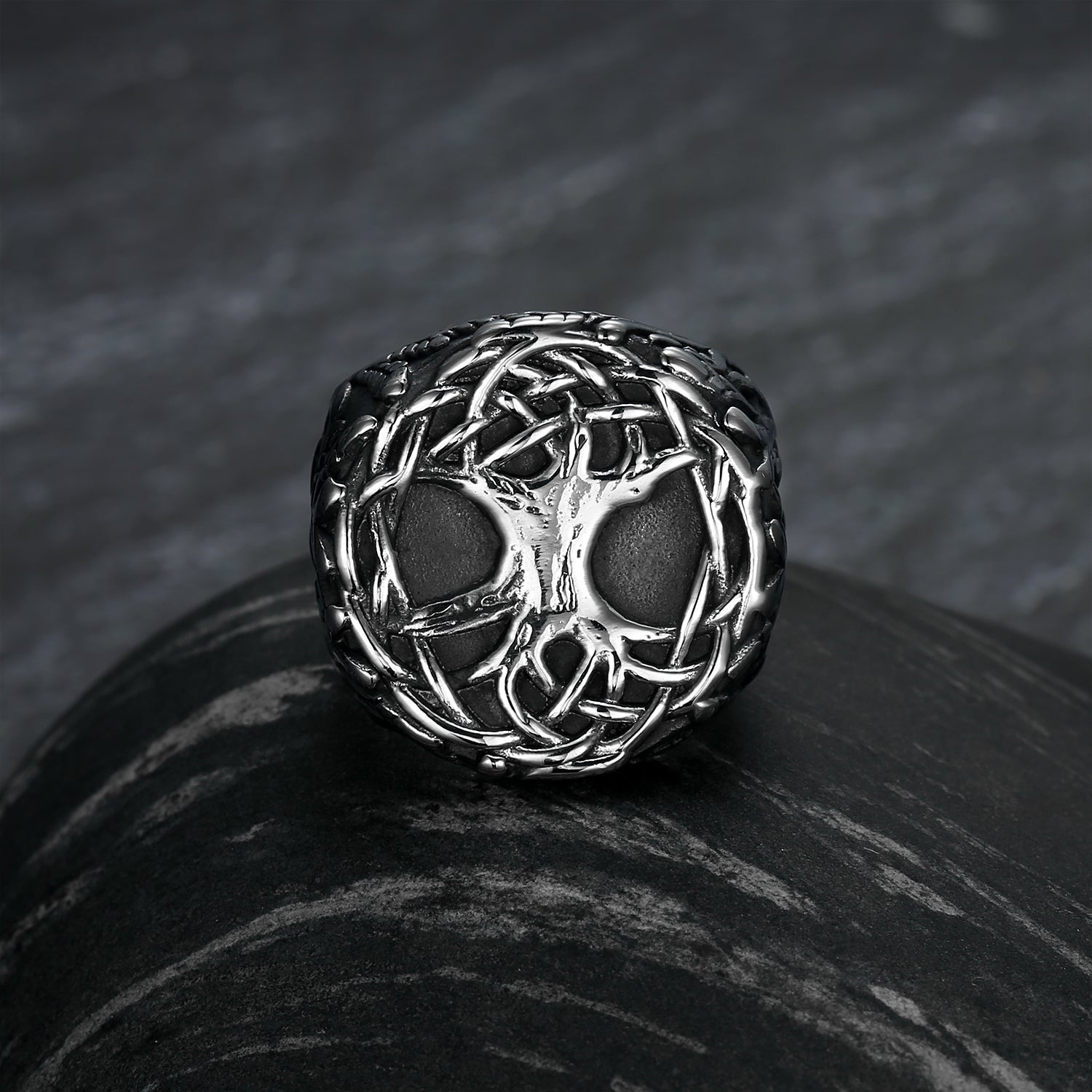 Bjorn Regalia Handcrafted Stainless Steel Yggdrasil / Tree of Life Signet Ring