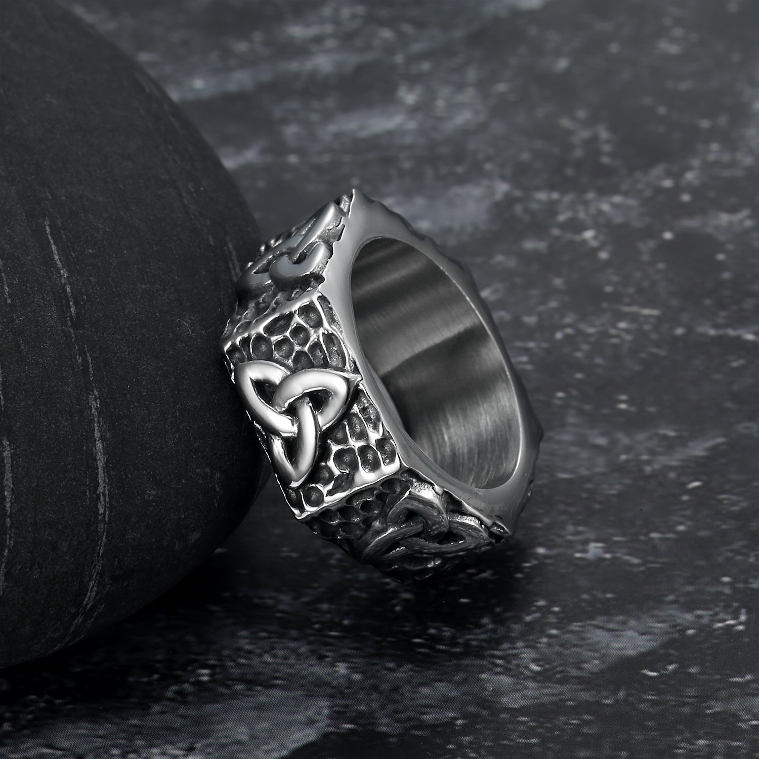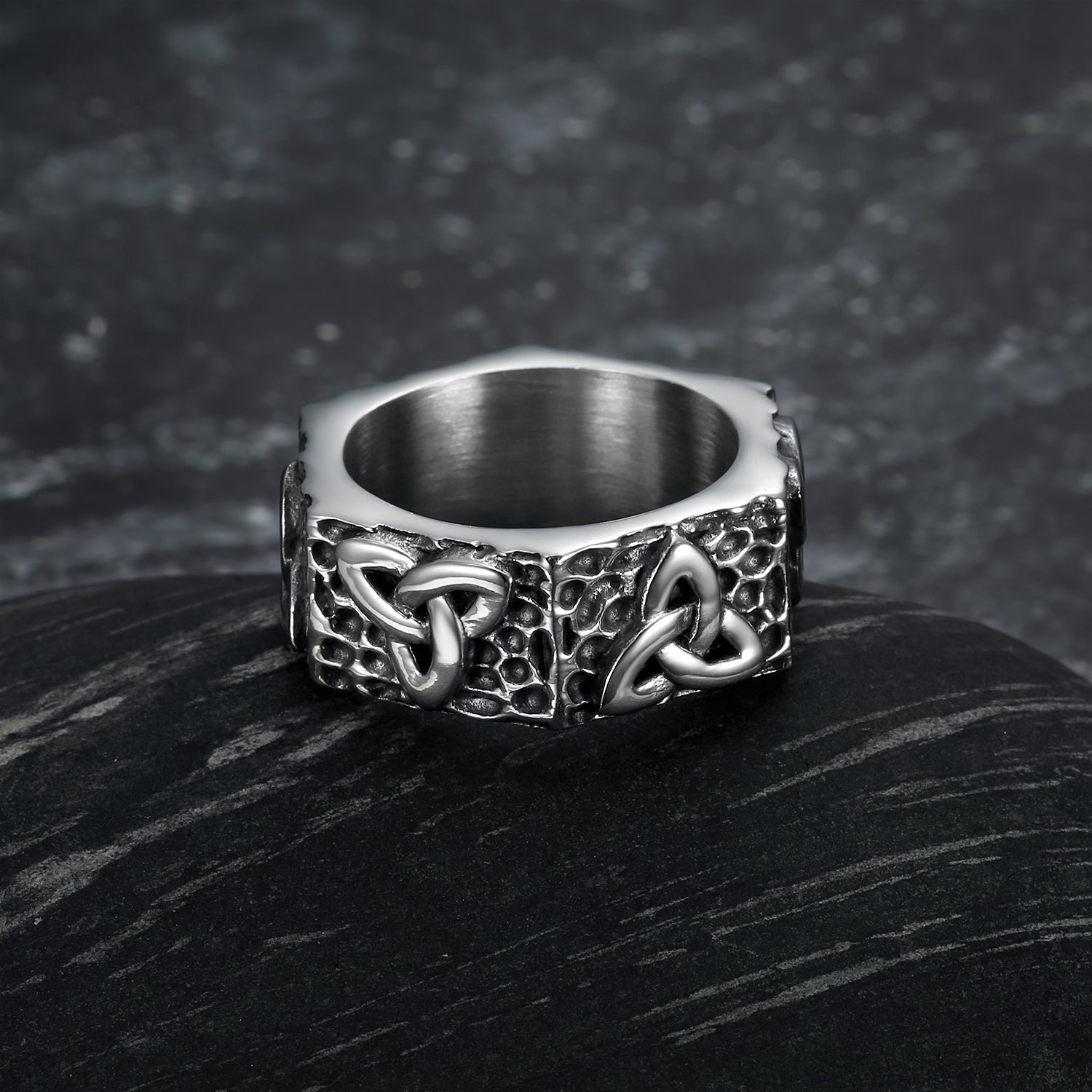 Bjorn Regalia Hexagonal Handcrafted Stainless Steel Triquetra Ring