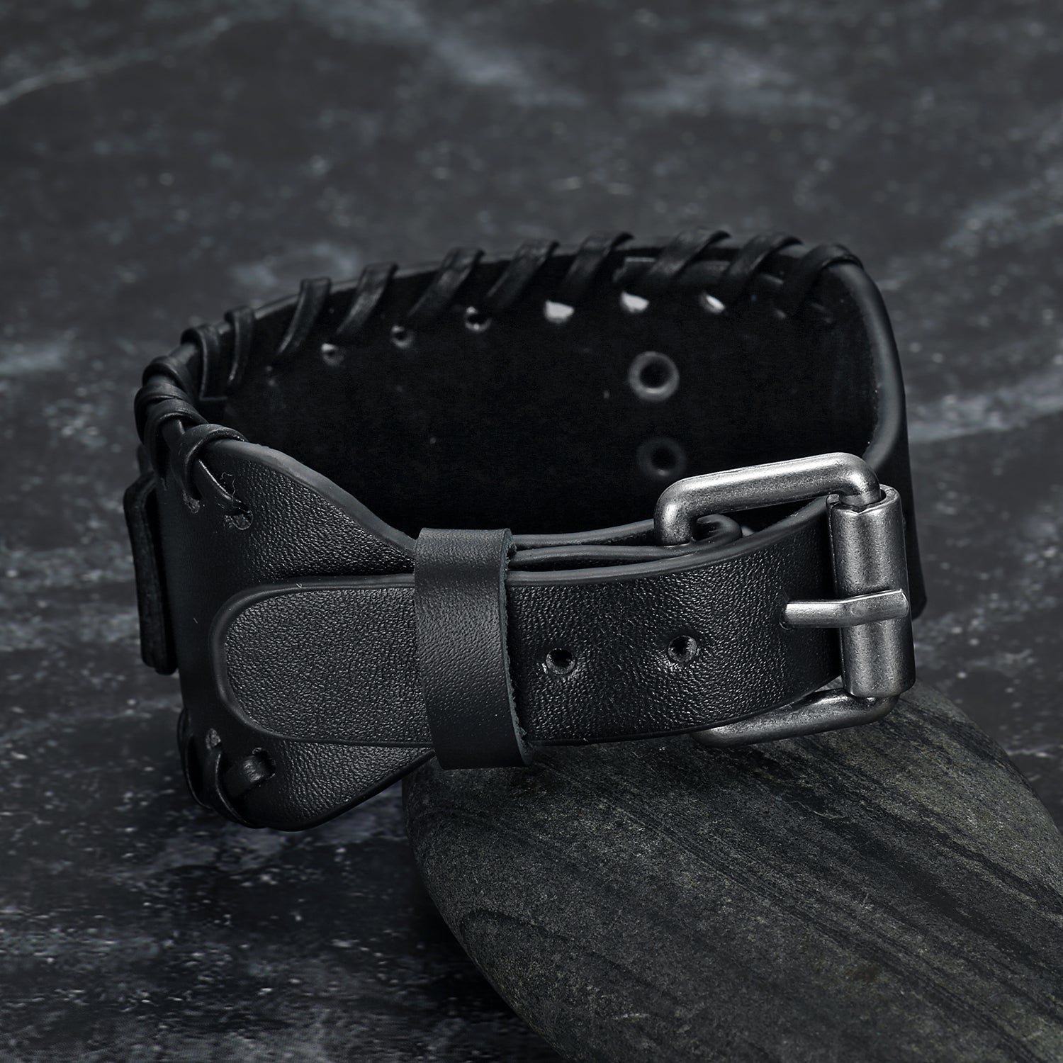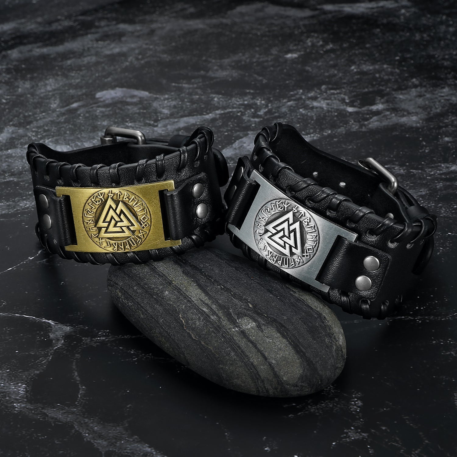 Bjorn Regalia Leather Buckle Arm Cuff With Metal Valknut Design