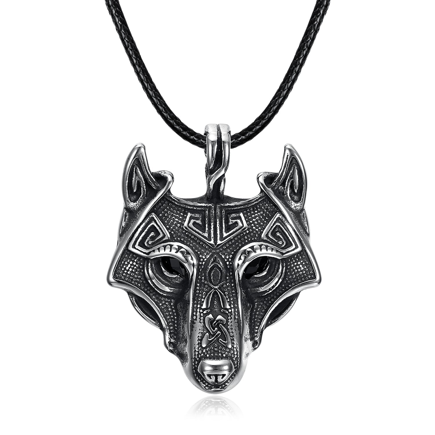 Bjorn Regalia Norse Wolf Head Necklace - Leather Chain
