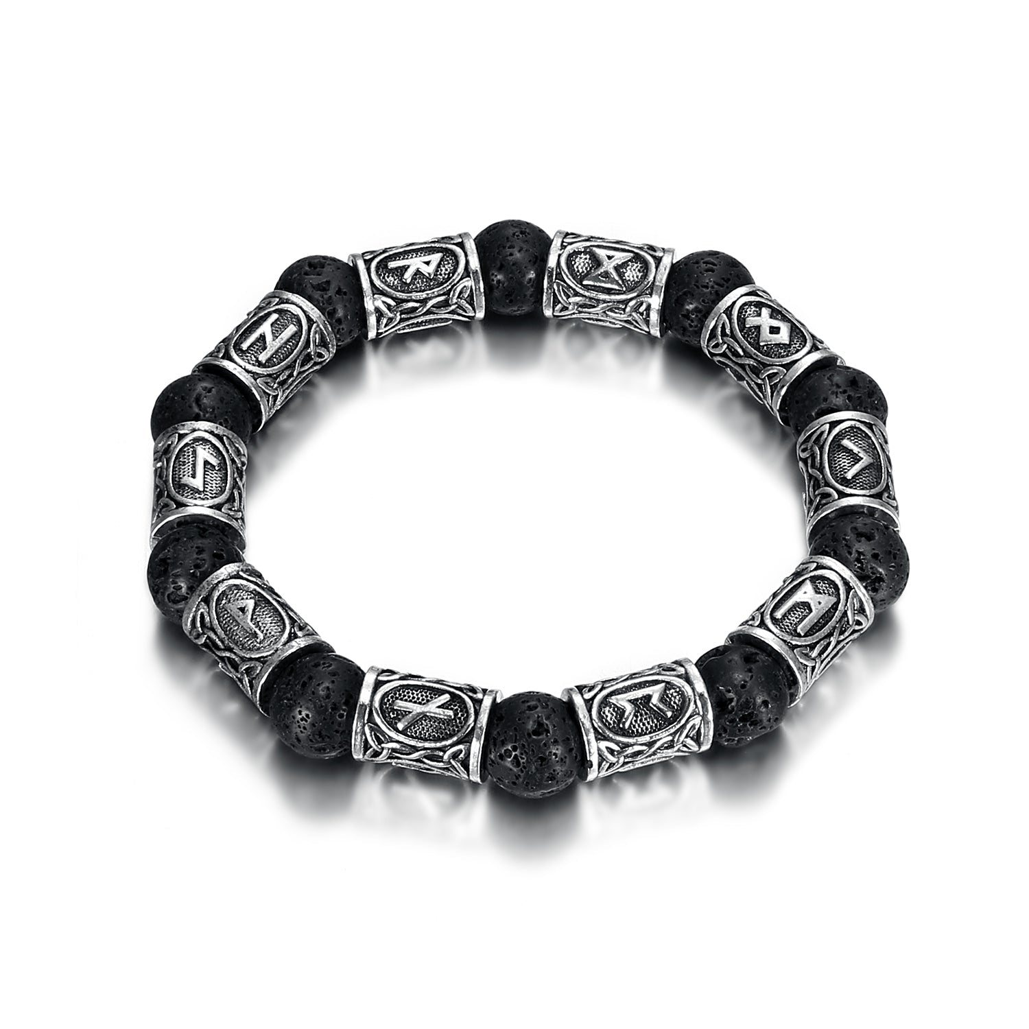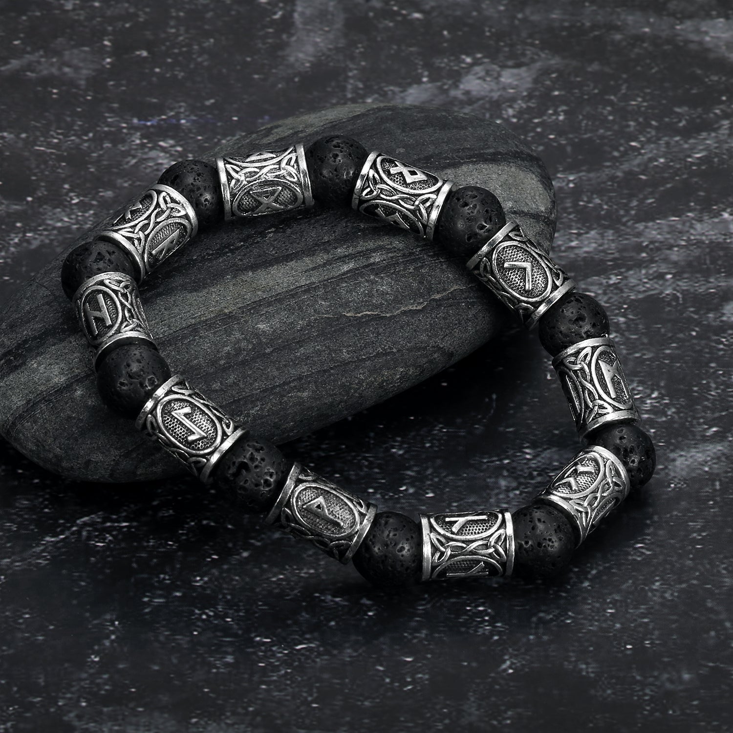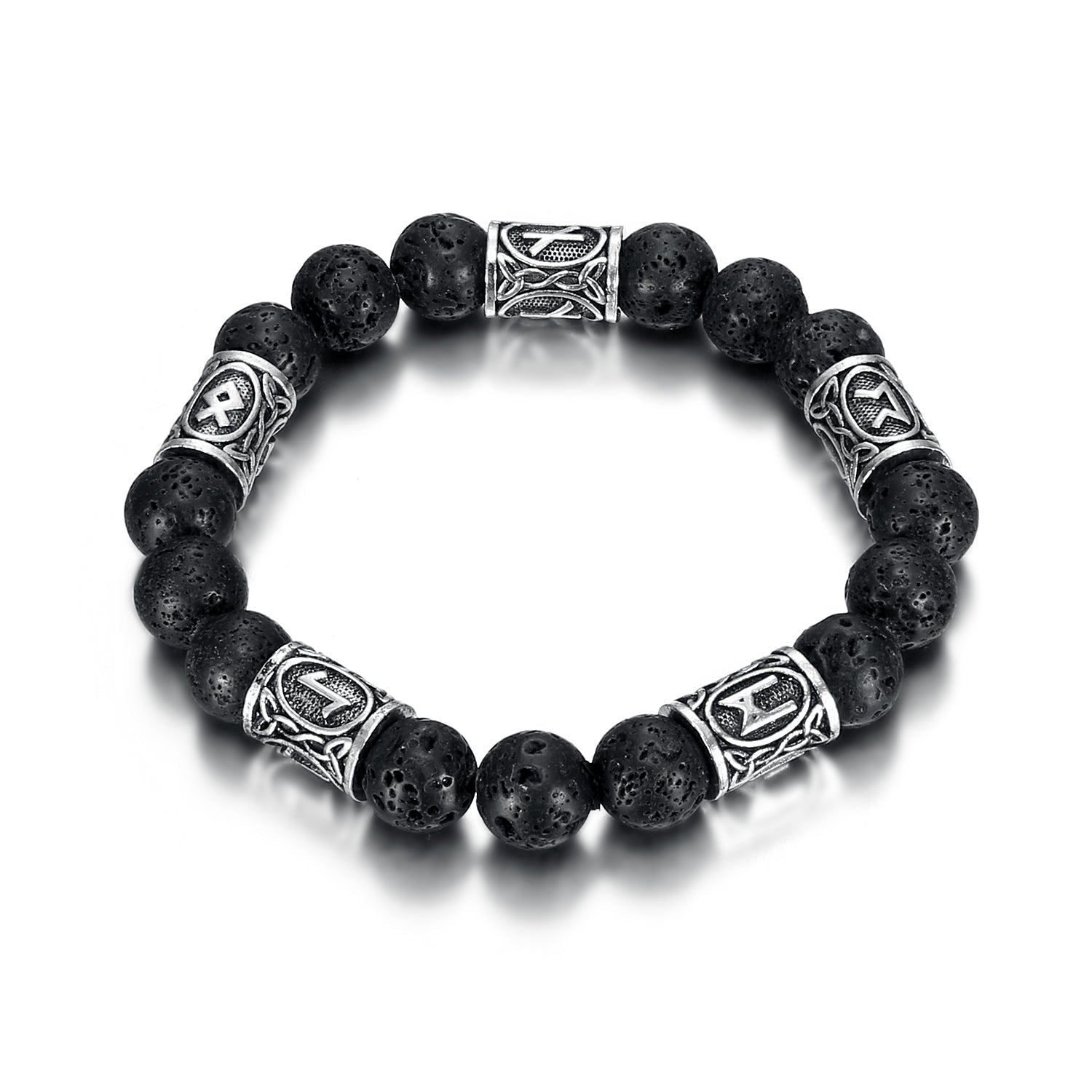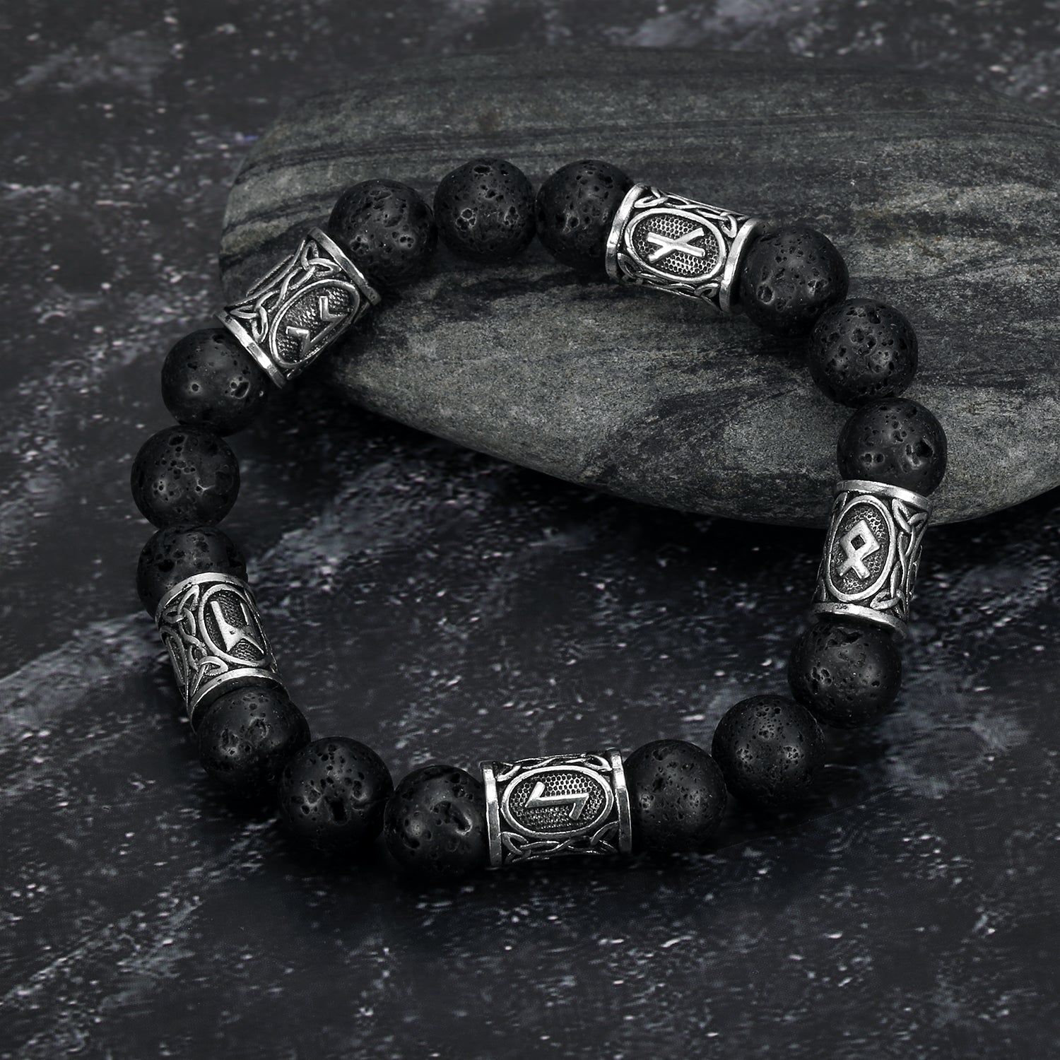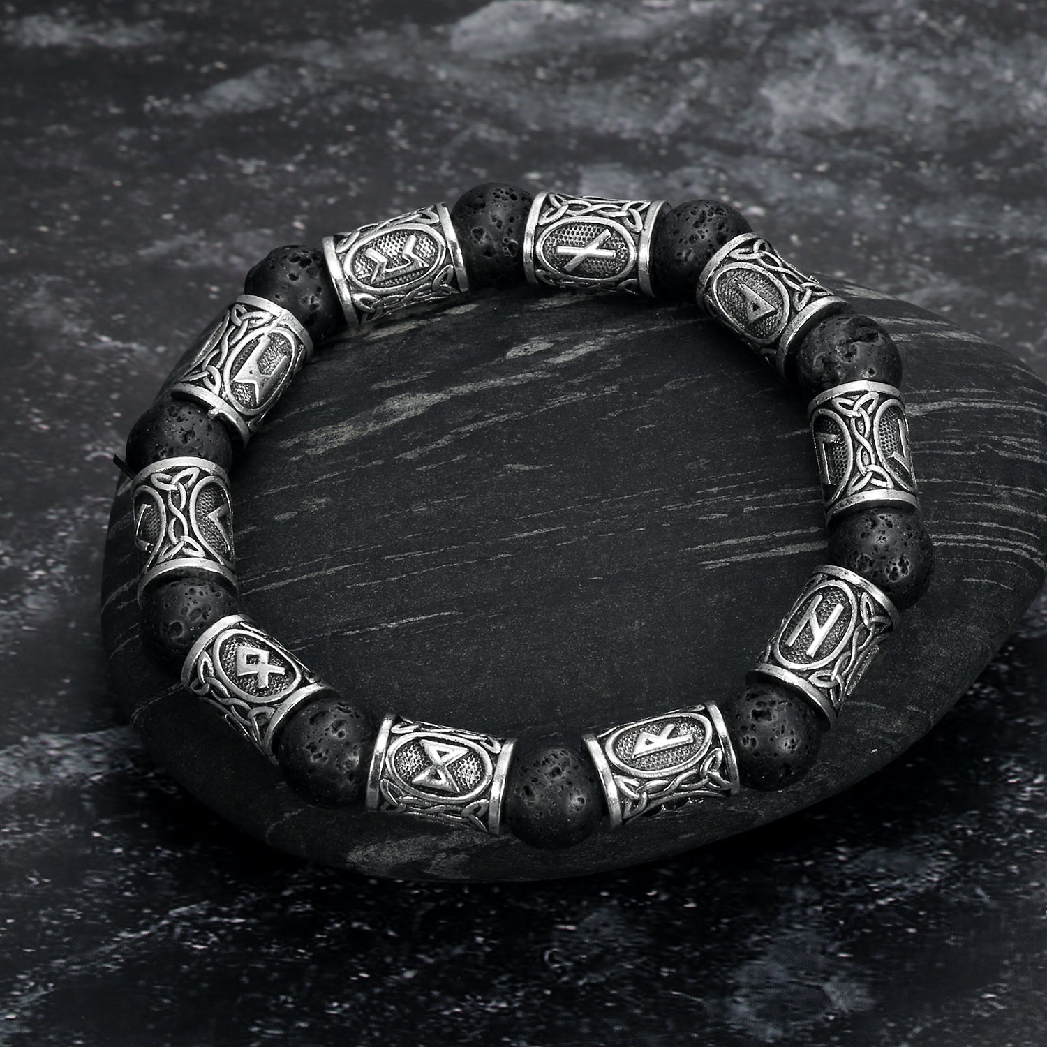 Bjorn Regalia Silver Rune and Black Lava Stone Bracelet