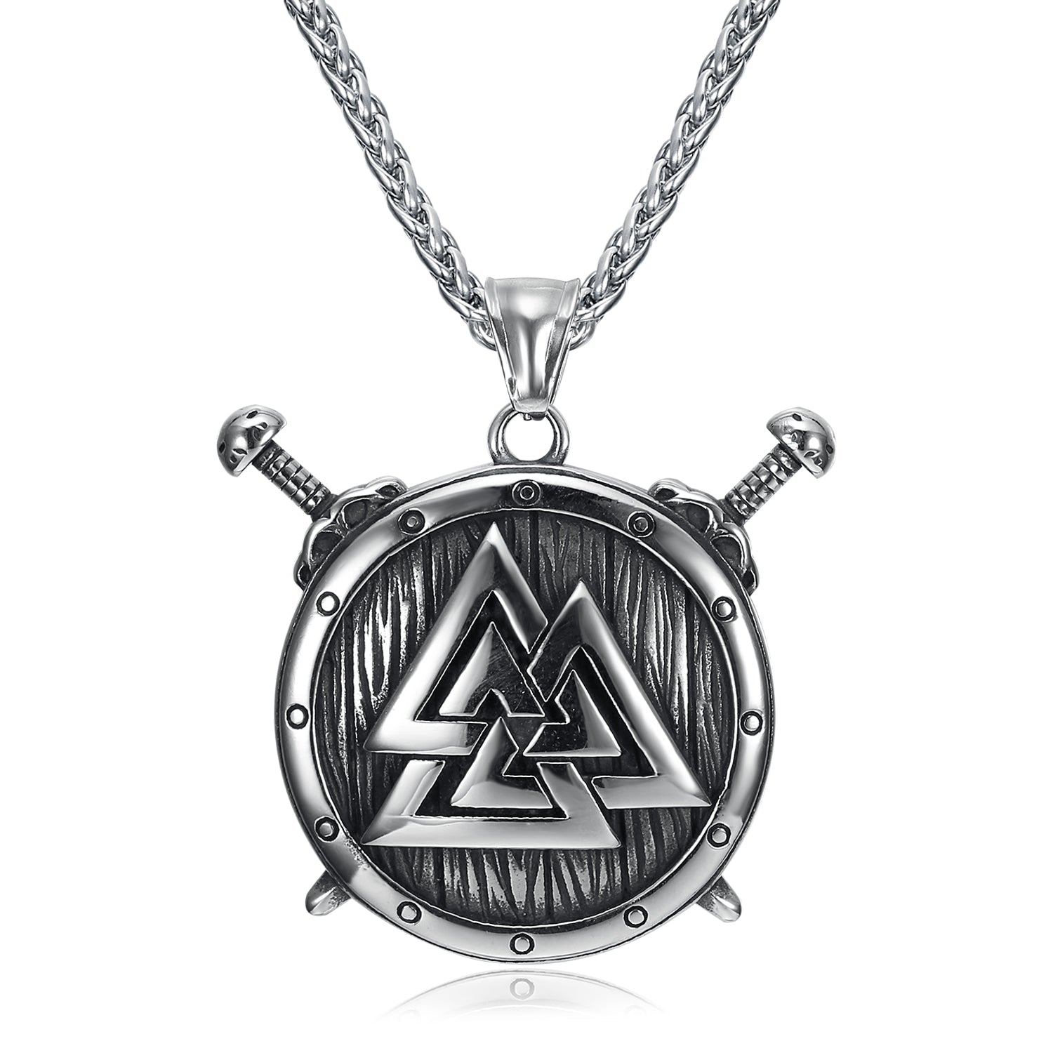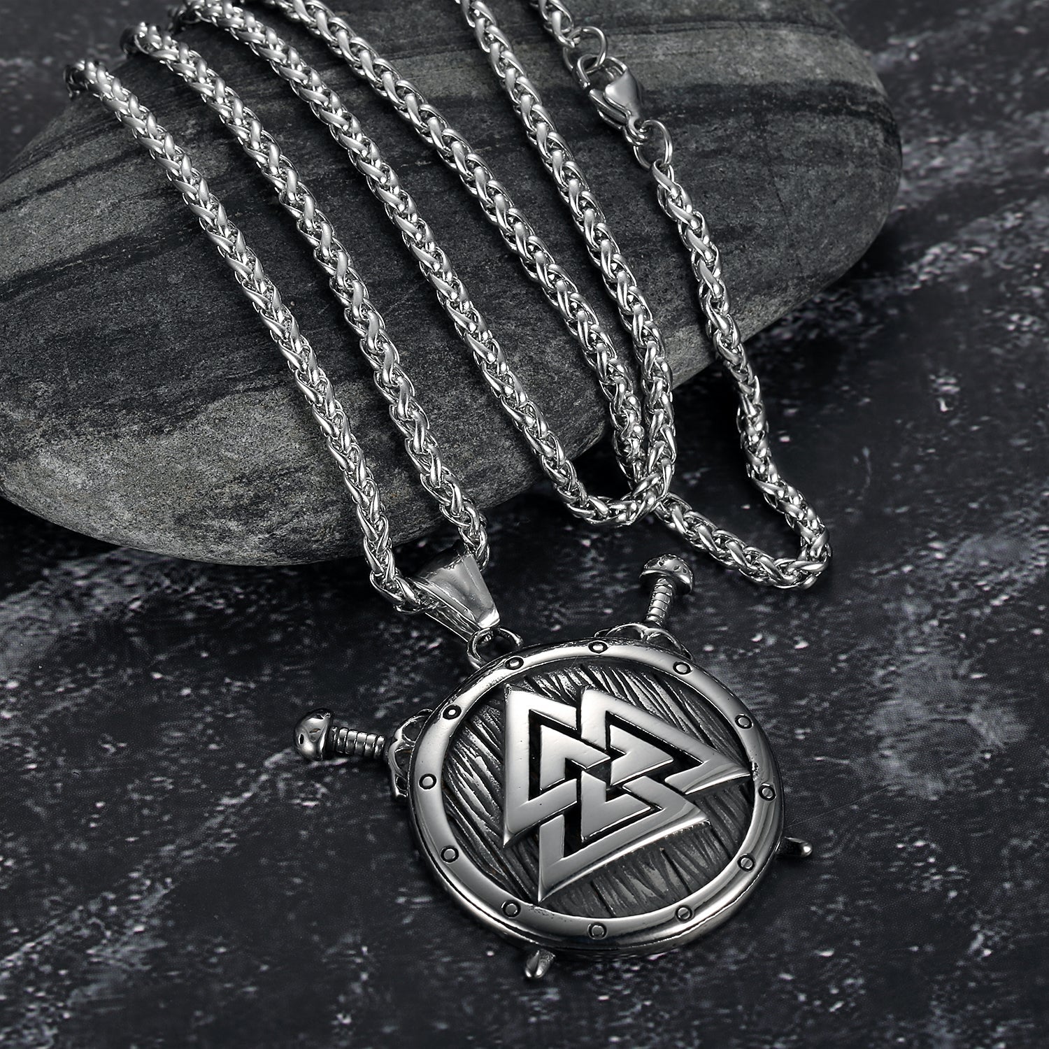 Bjorn Regalia Stainelss Steel Viking Shield and Valknut Necklace