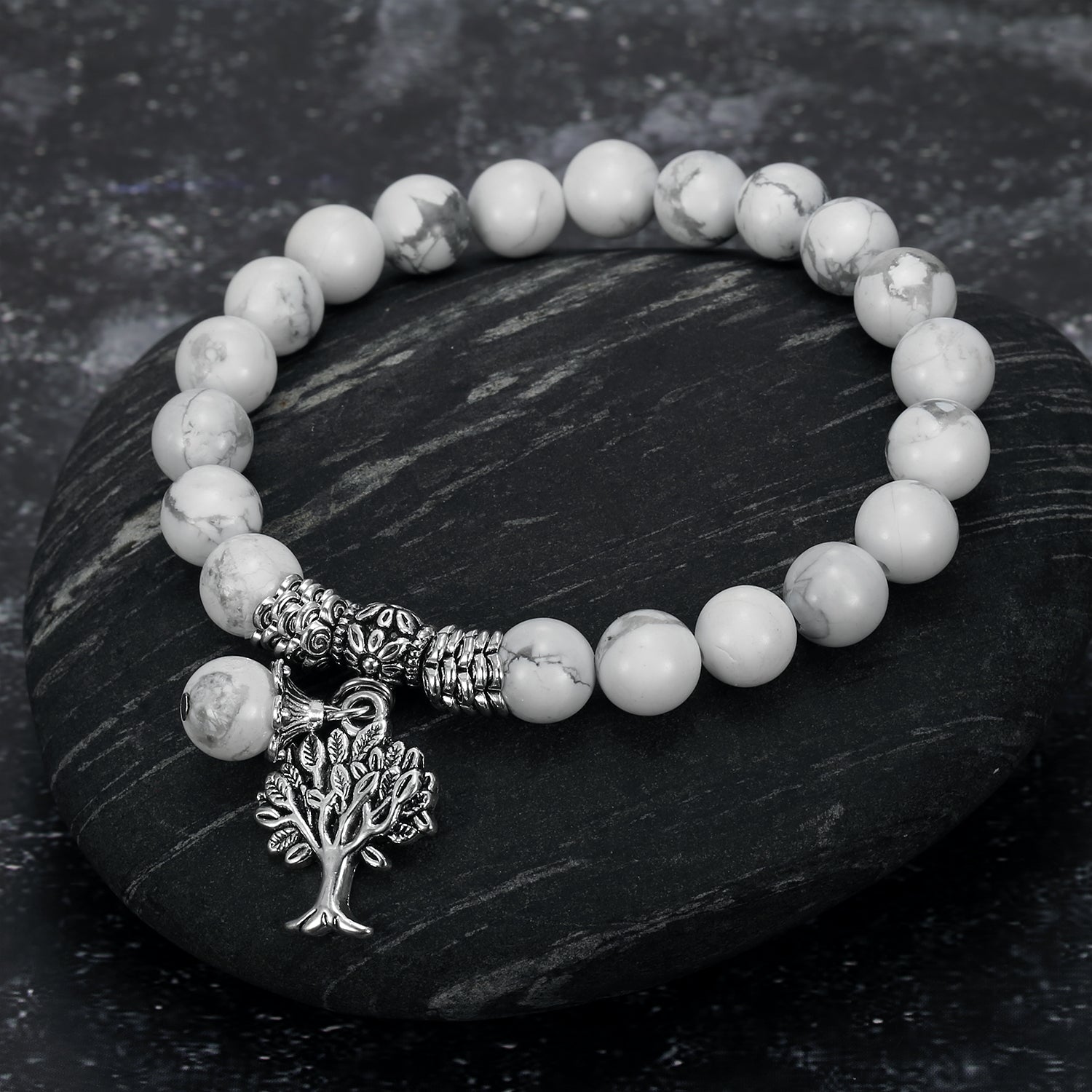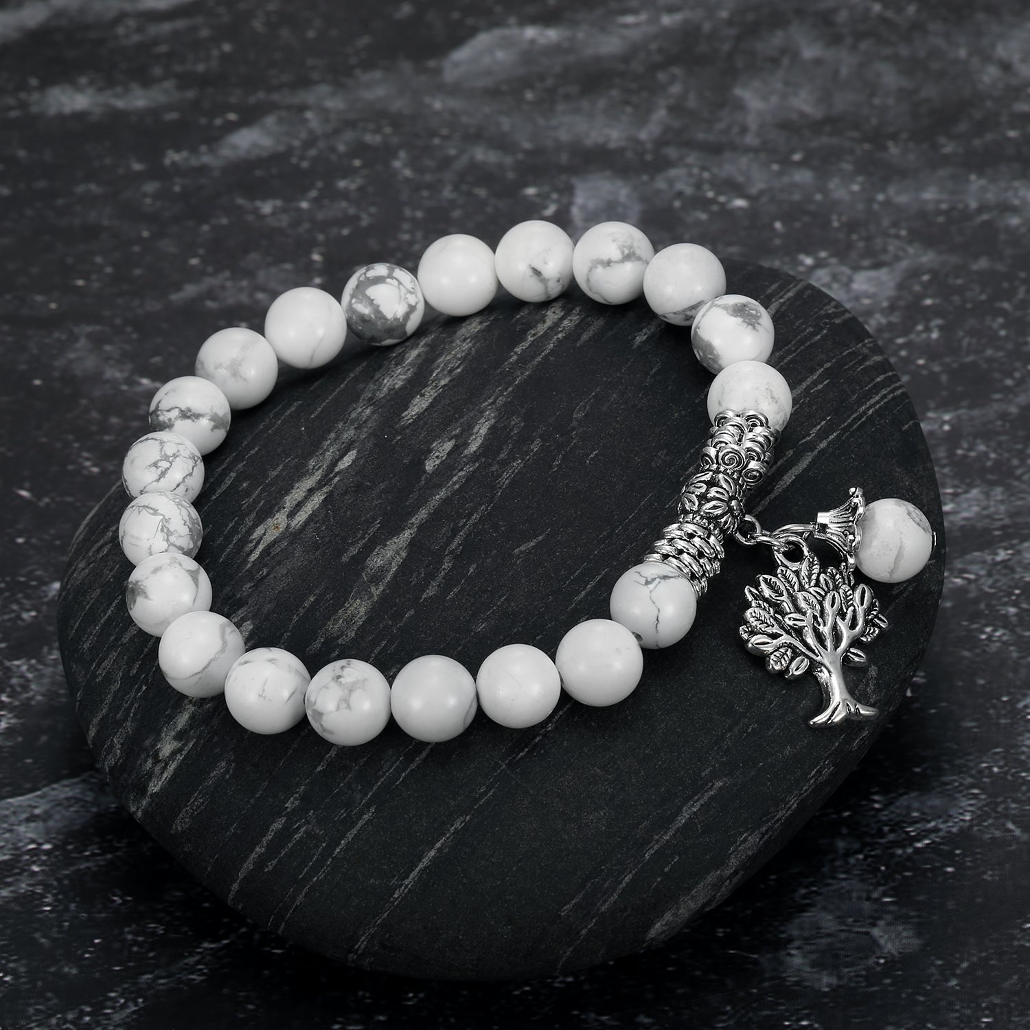 Bjorn Regalia White Howlite Gemstone Bracelet with Tree of Life Charm