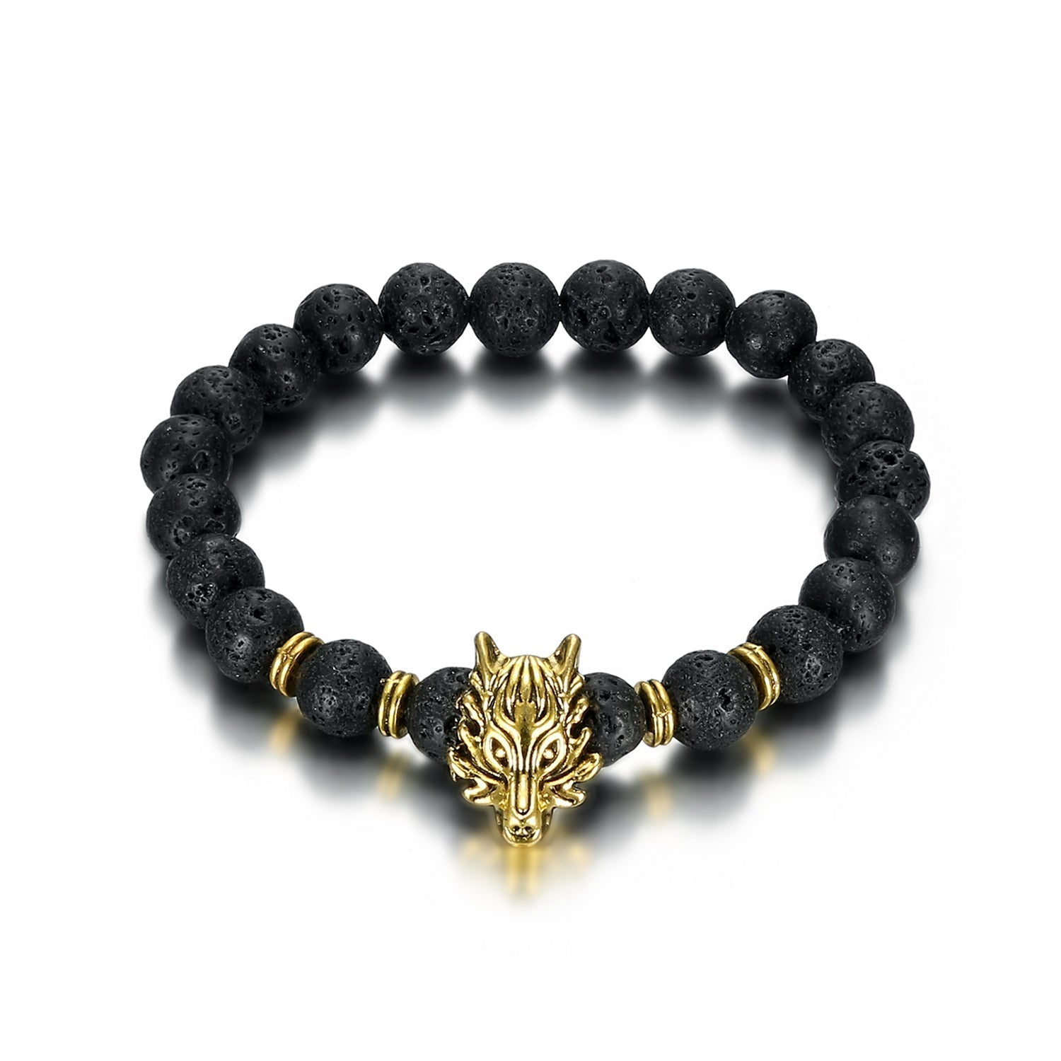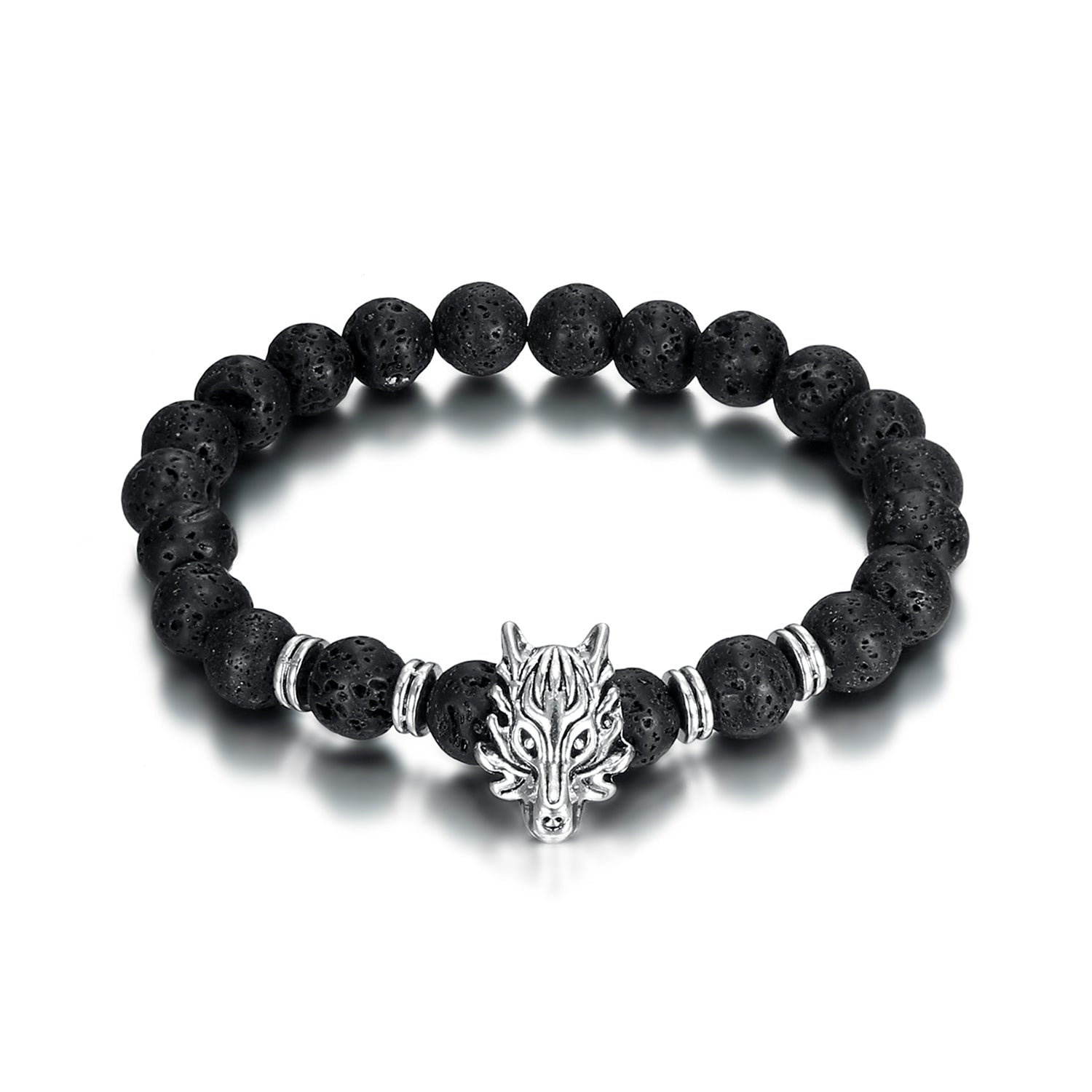 Bjorn Regalia Wolf Head and Lava Stone Bracelet