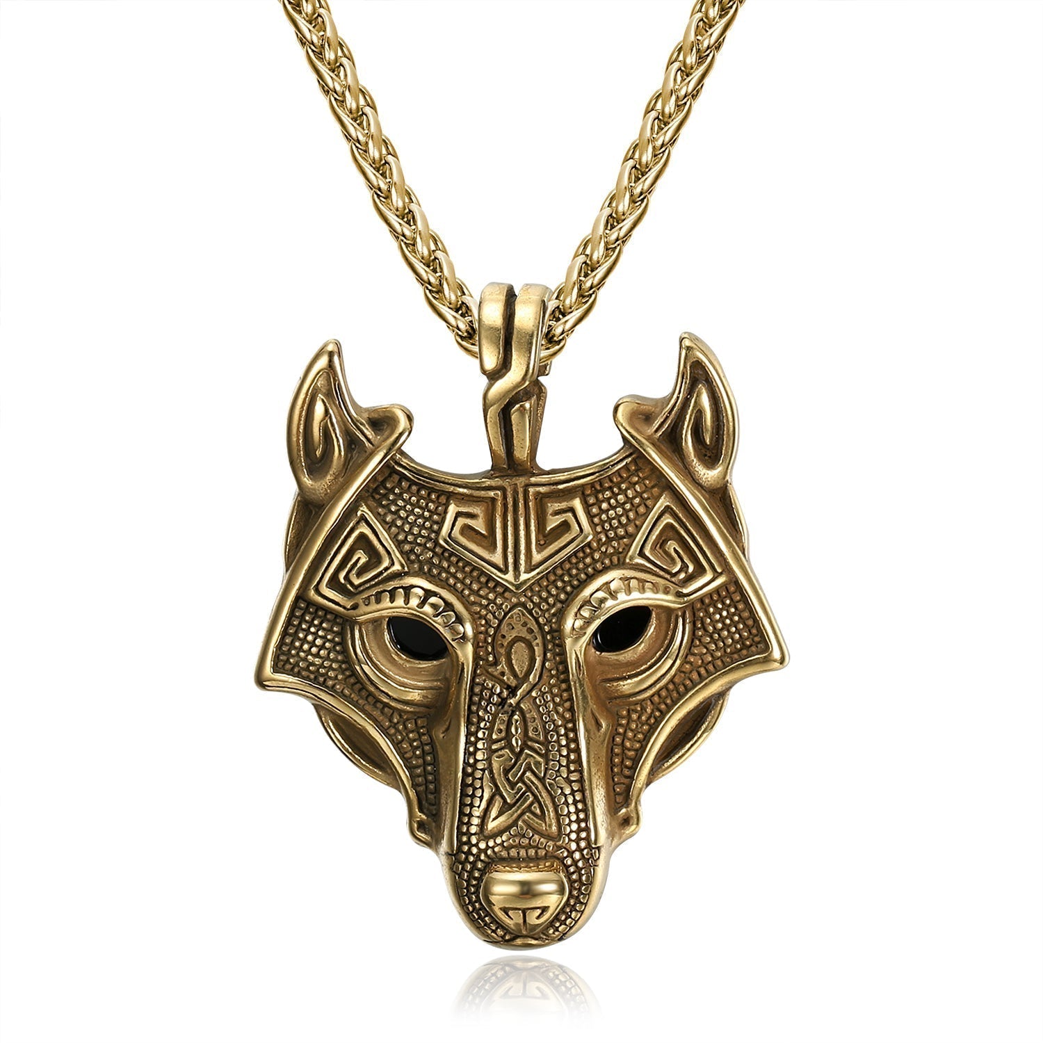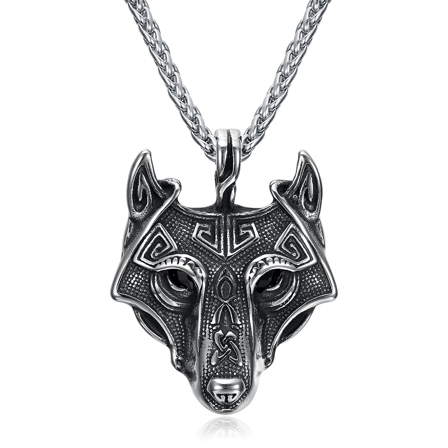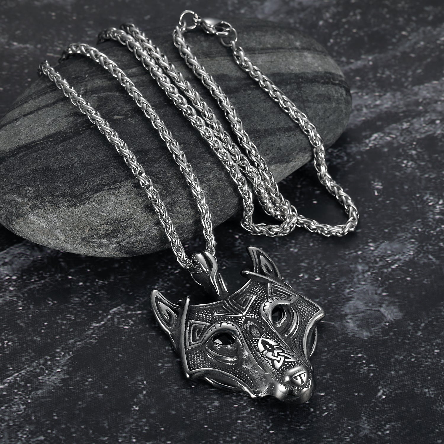 Bjorn Regalia Wolf Head Viking Pendant - Metal Chain