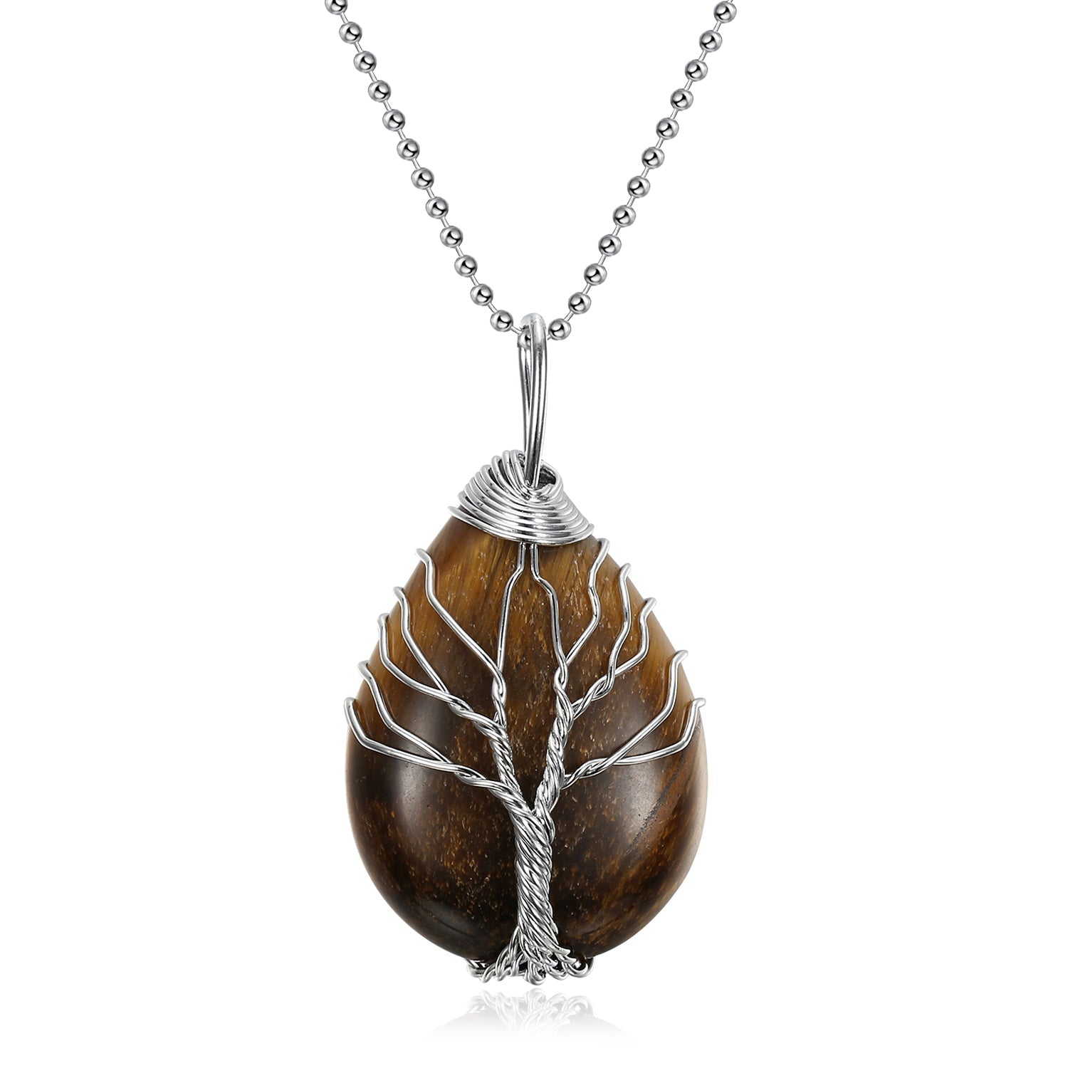 [LIMITED EDITION] Yggdrasil / Tree of Life Necklace on Teardrop Semi-Precious Stone